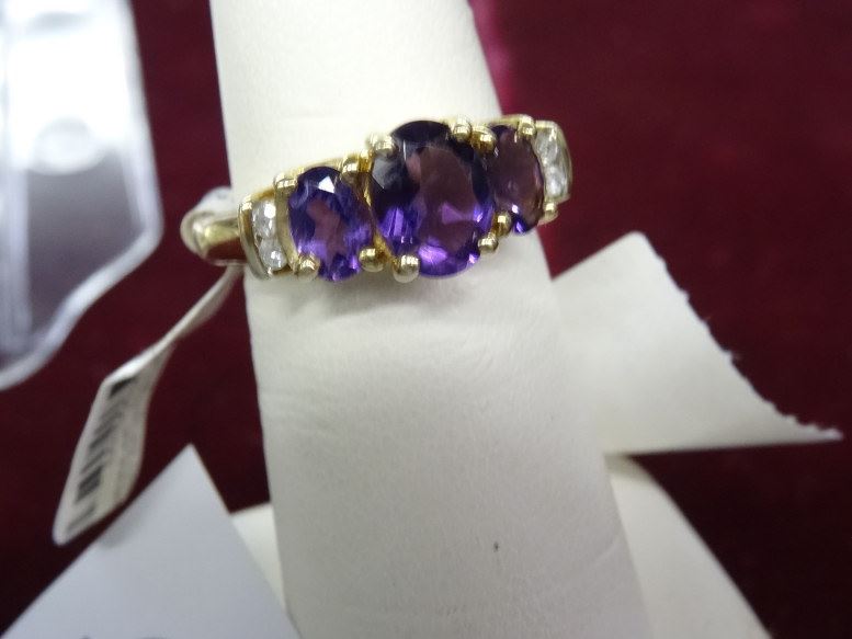 10 Kg. Syn Amethyst & Diamond Accent Ring
