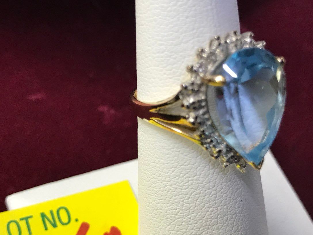 10K Yellow Gold Blue Topaz & Diamond Ring 4.1g