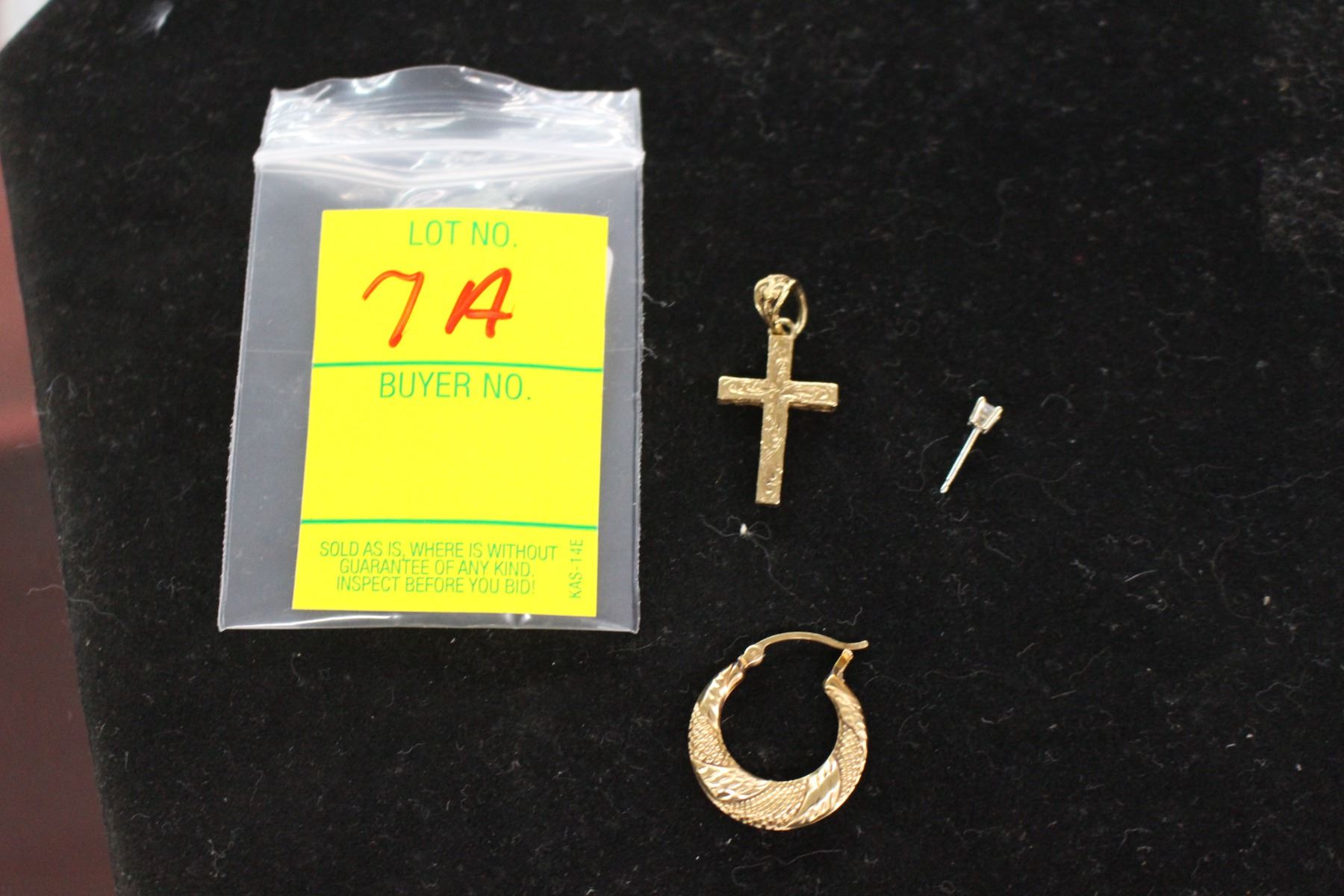 14K .2g WG Earring, 10K Hoop Earring .6g, 9K Cross 2.4g