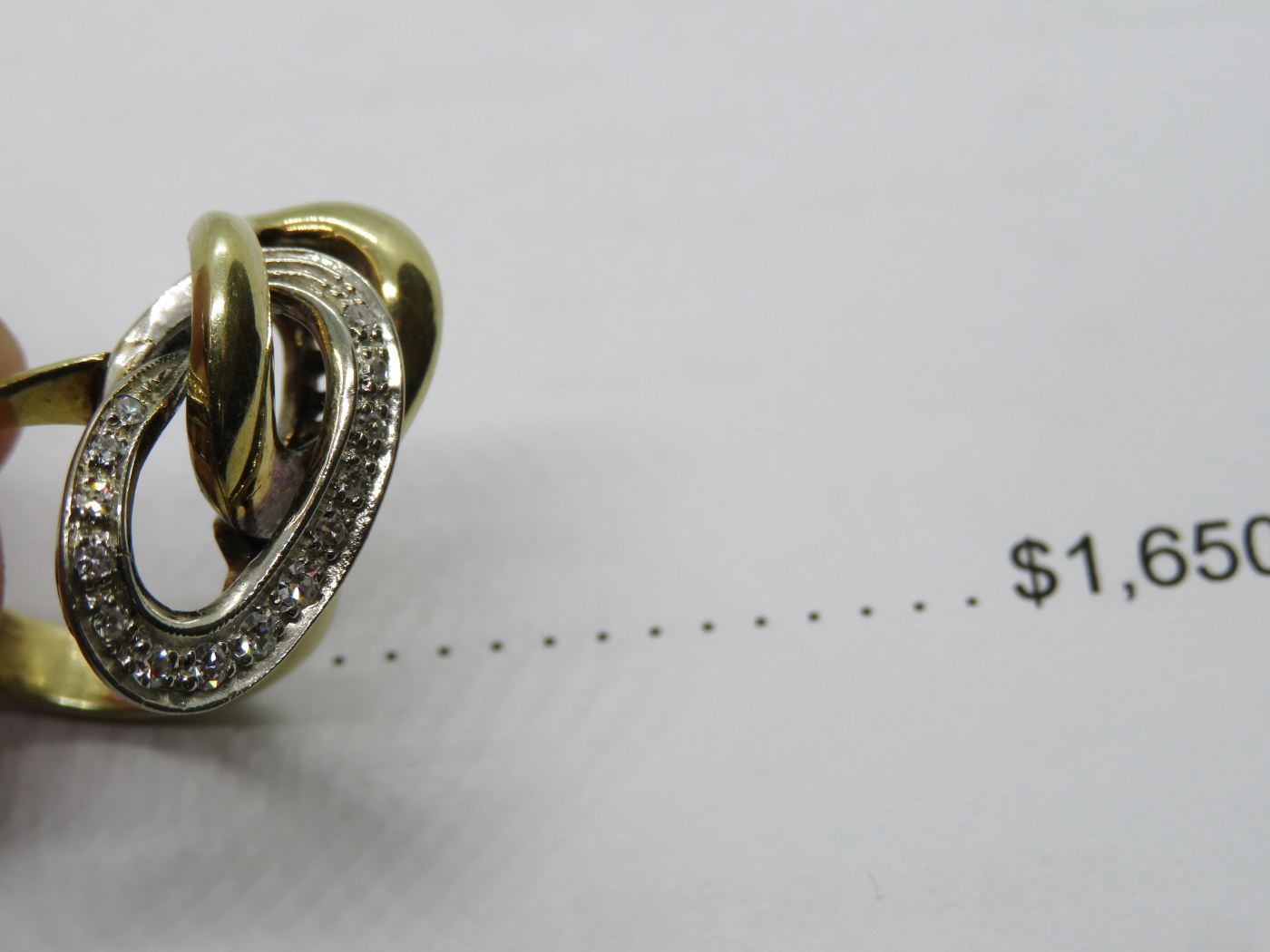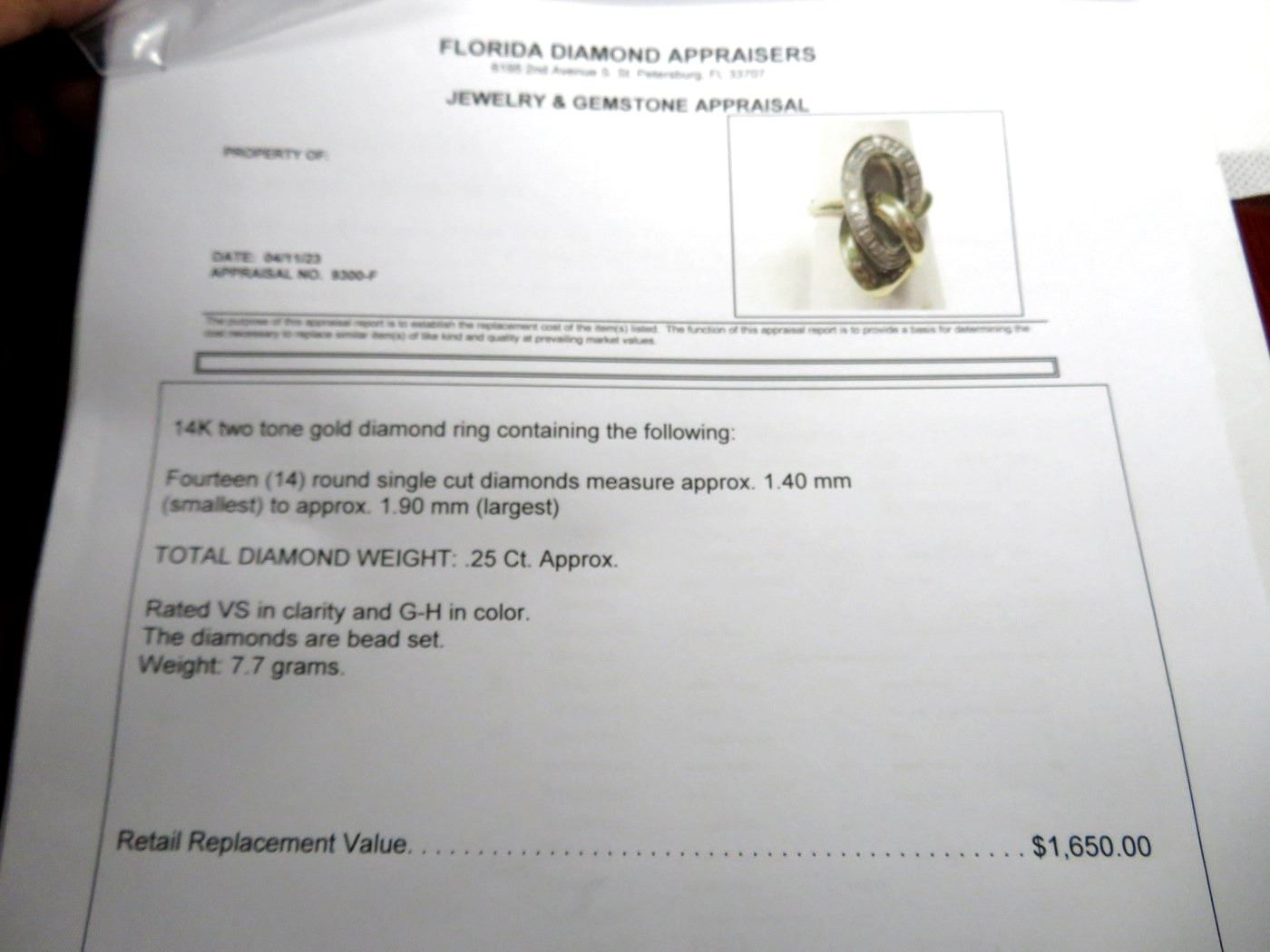 14K Two Tone Gold Diamond Ring w/14 Single Cut Diamonds 7.7g Retail Value $1,650.00