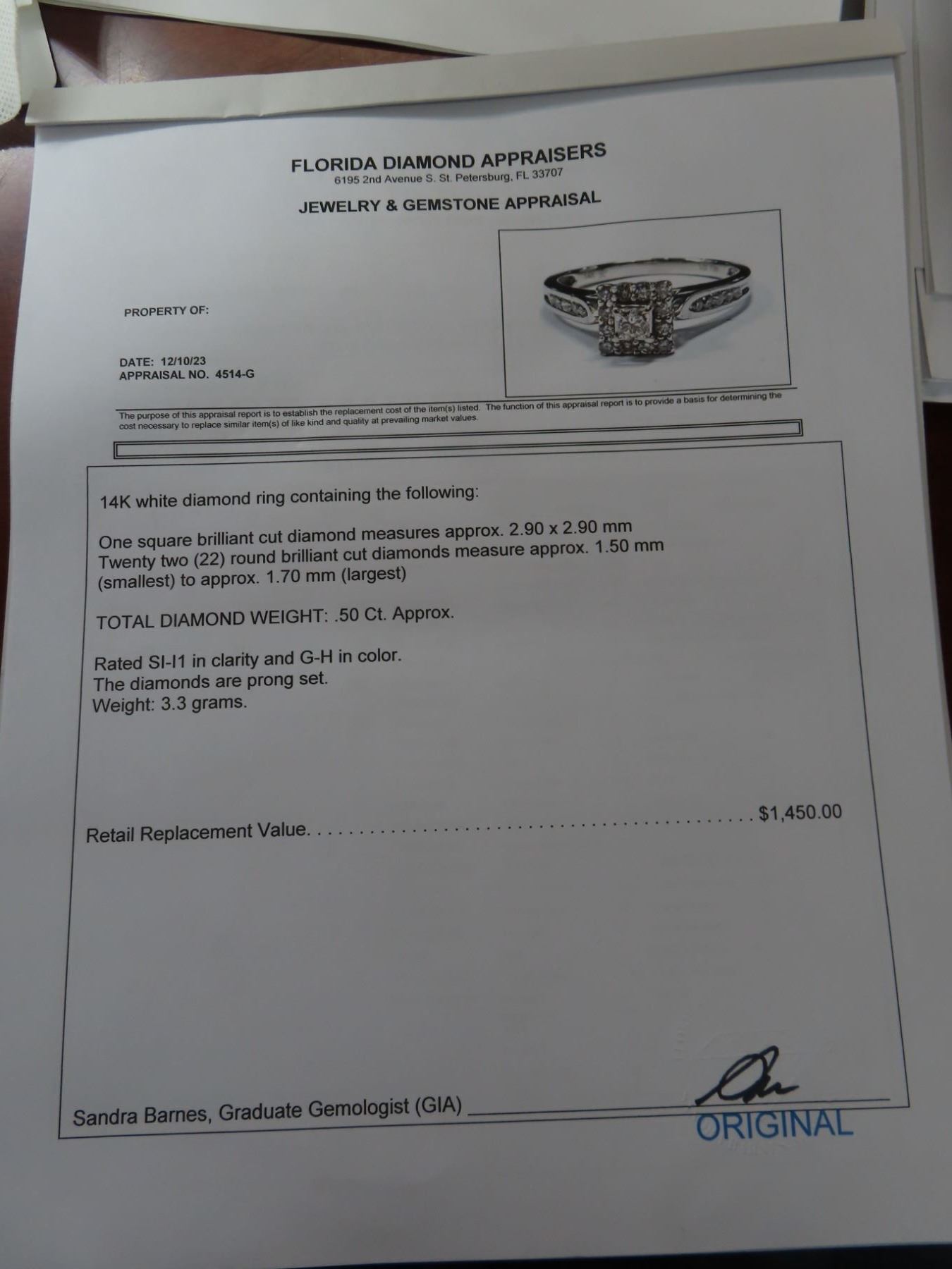 14K WG Diamond Ring w/One Square Cut Diamond 3.3g - Replacement Value -