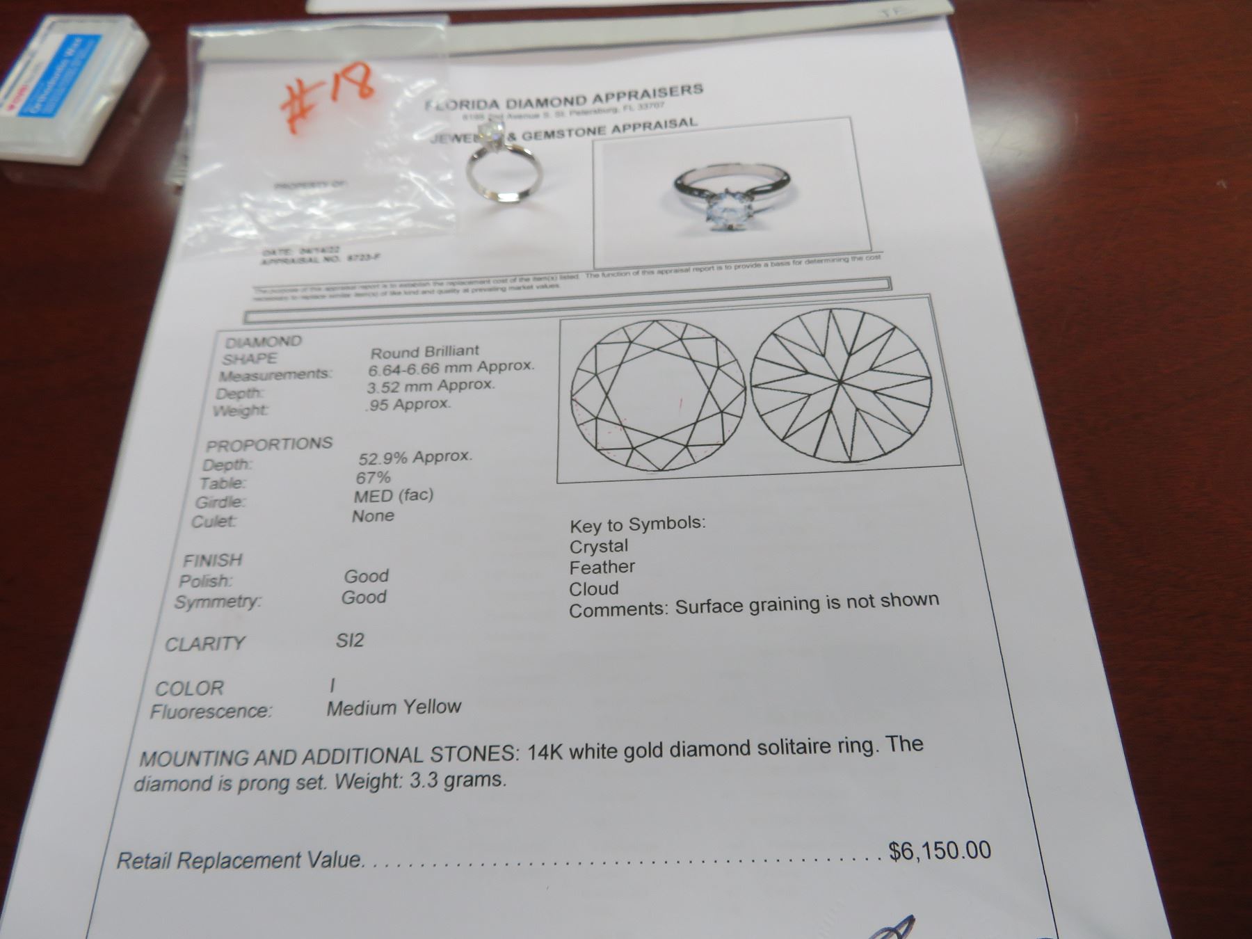 14K WG Diamond Solitaire Ring 3.3g - Replacement Value $6,150.00