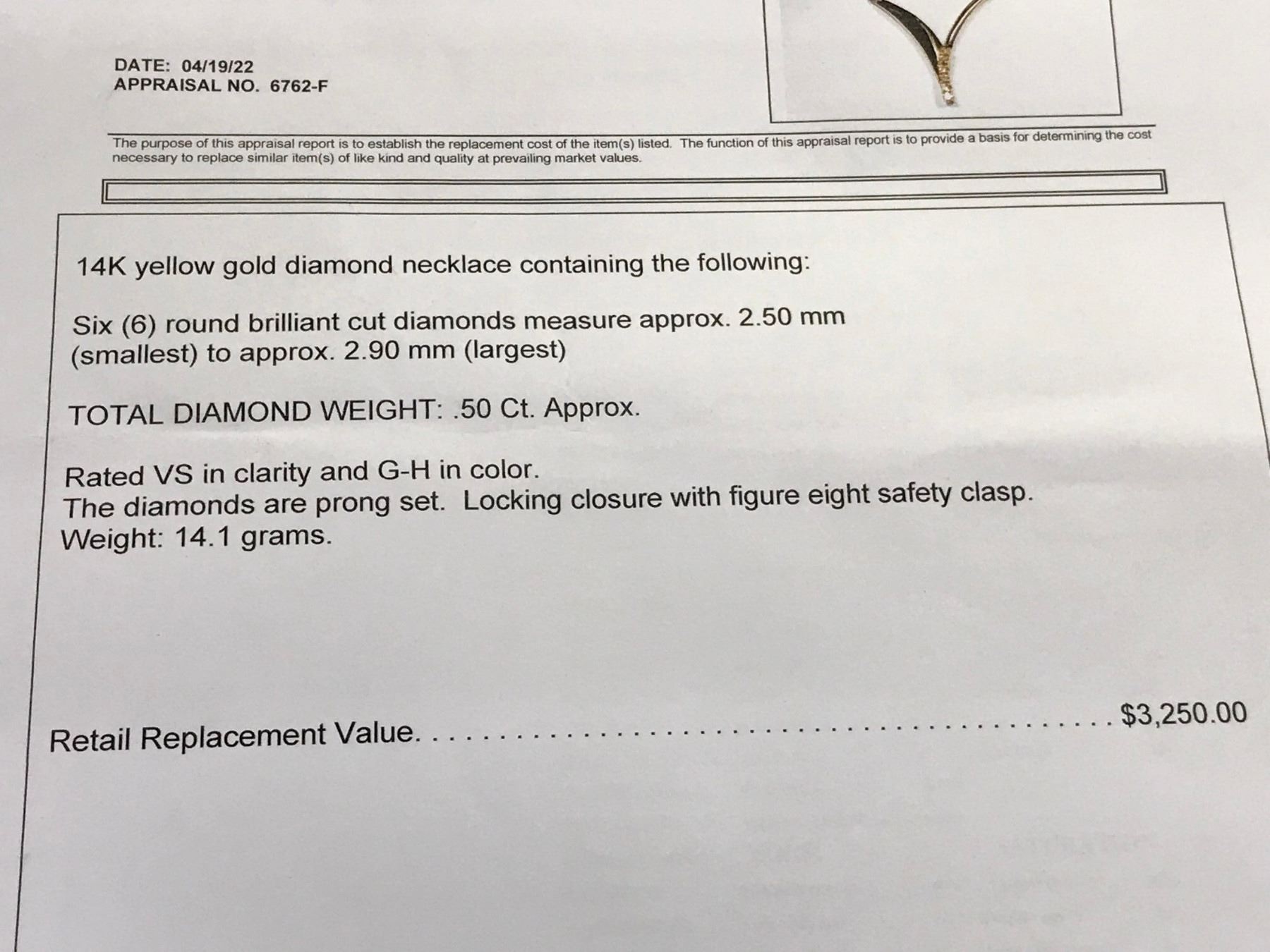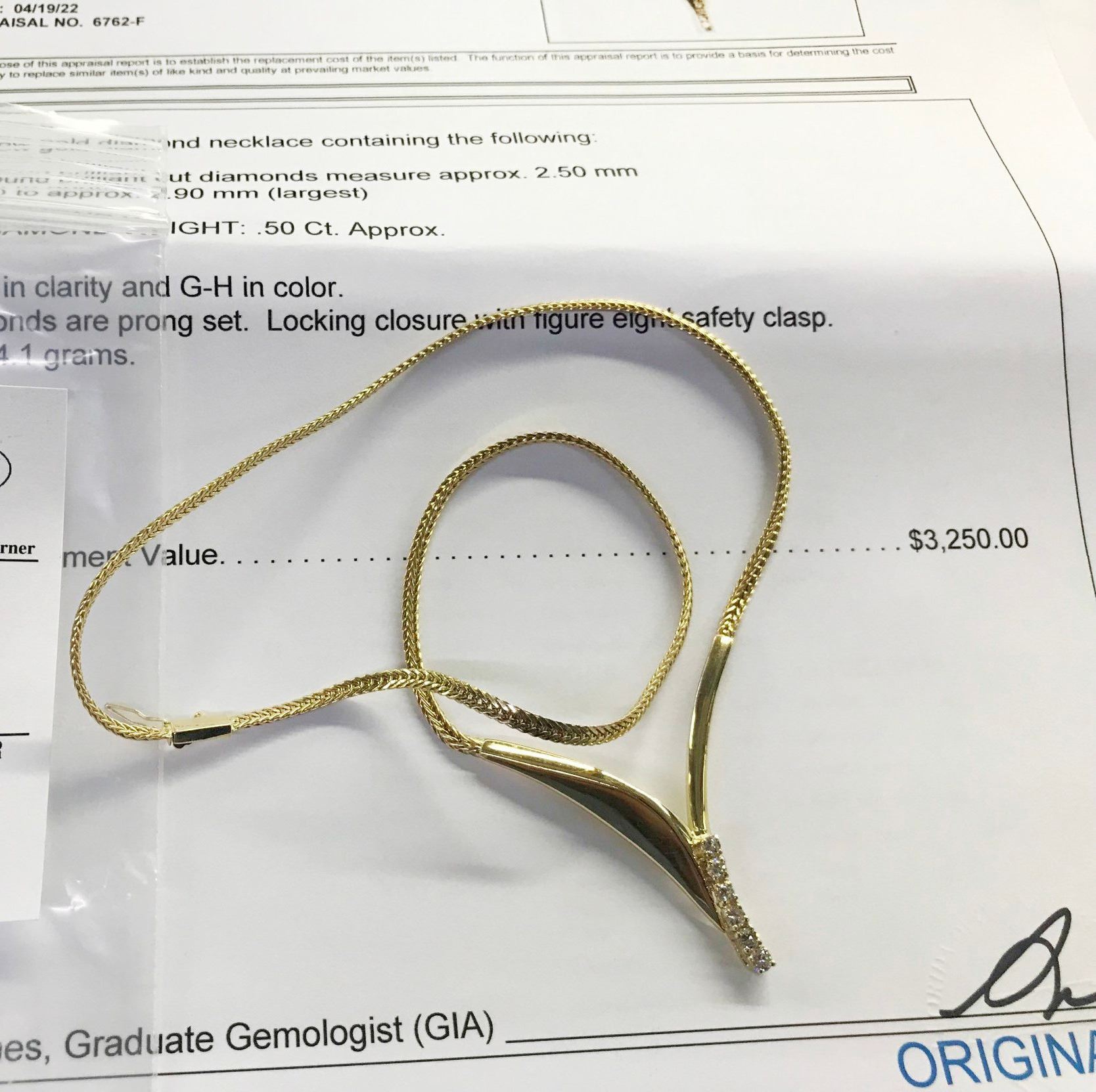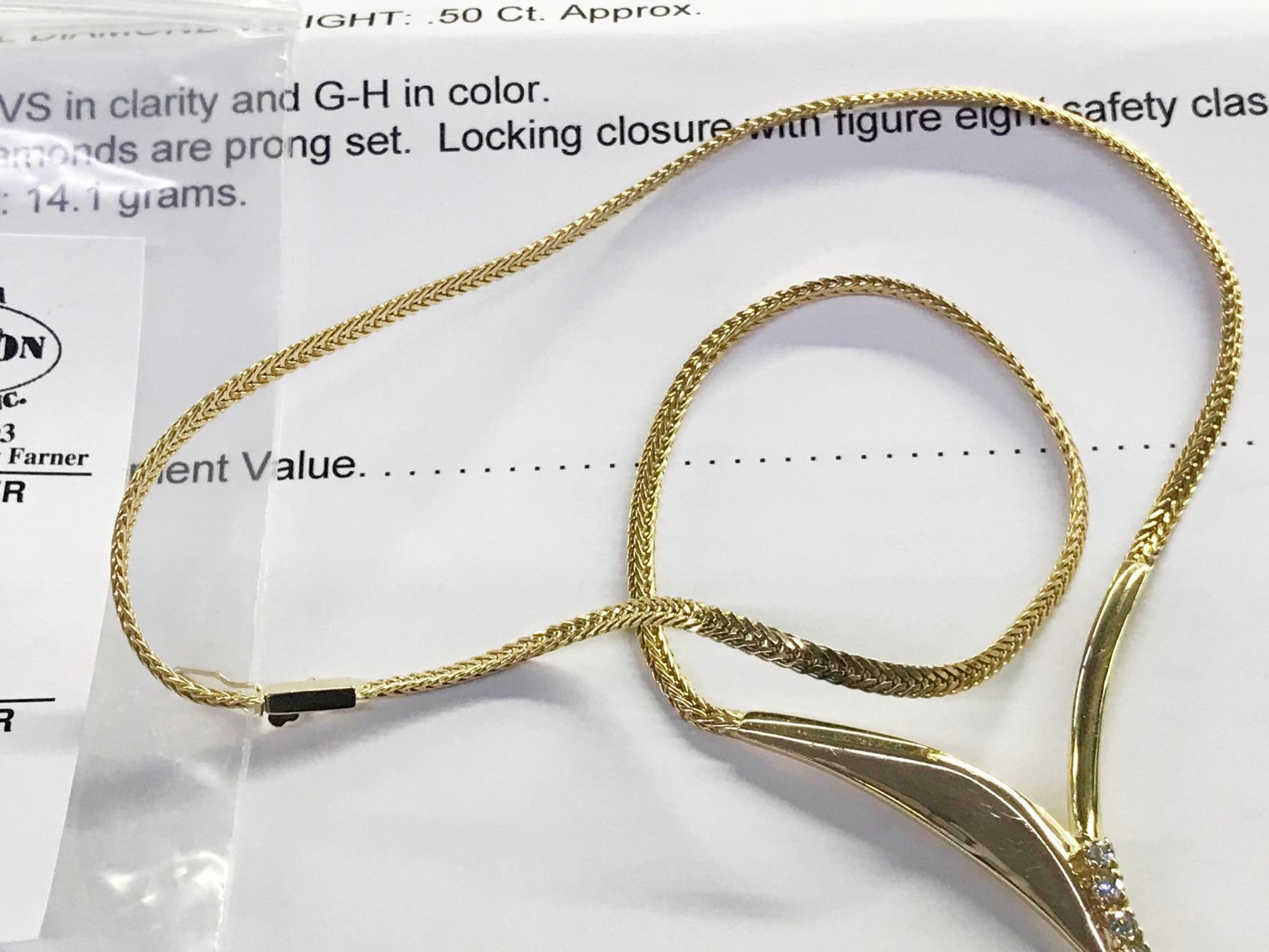 14K YG Diamond Necklace 6 Round Diamonds 14.1g (Retail Value $3,250.00)