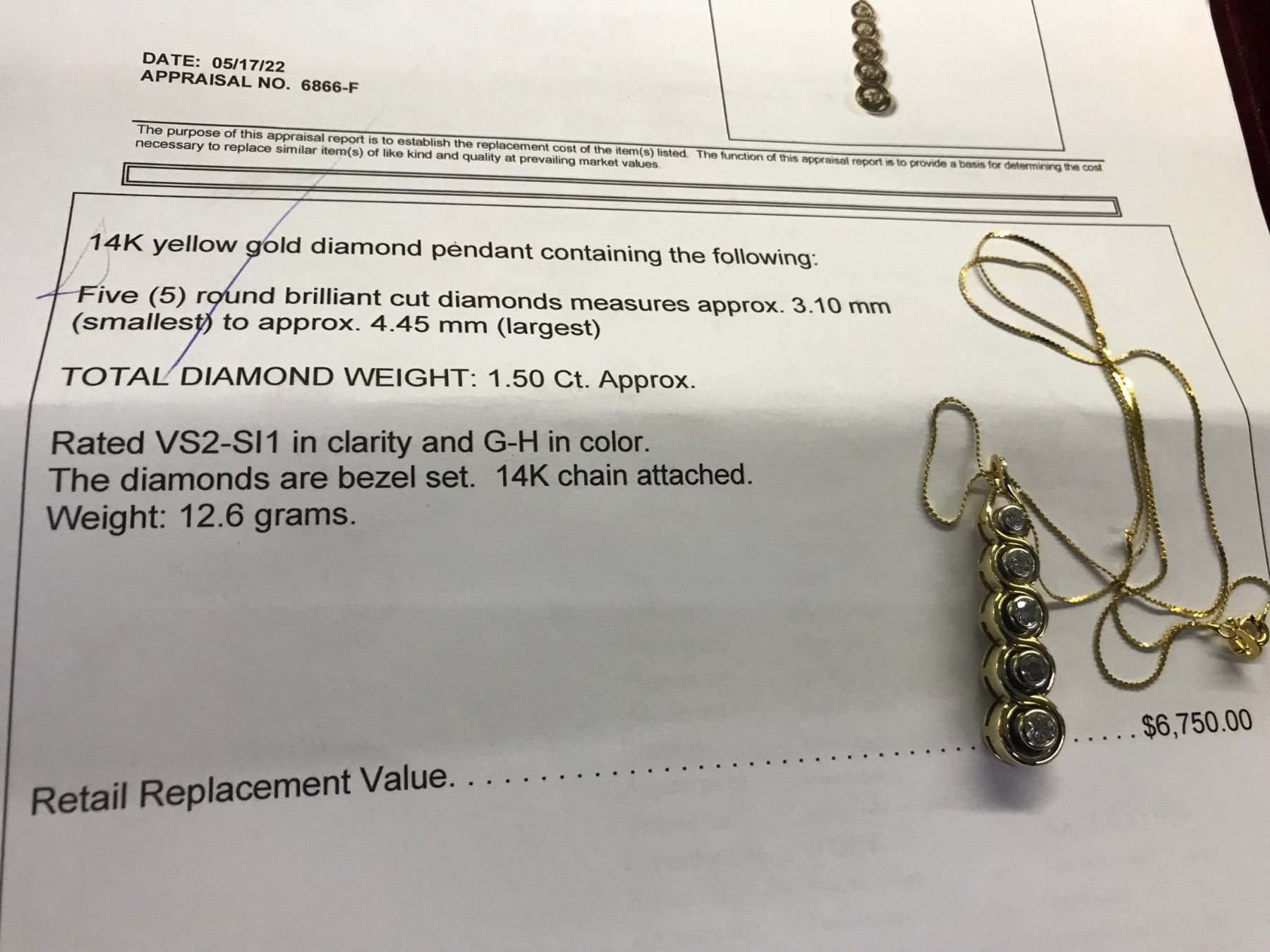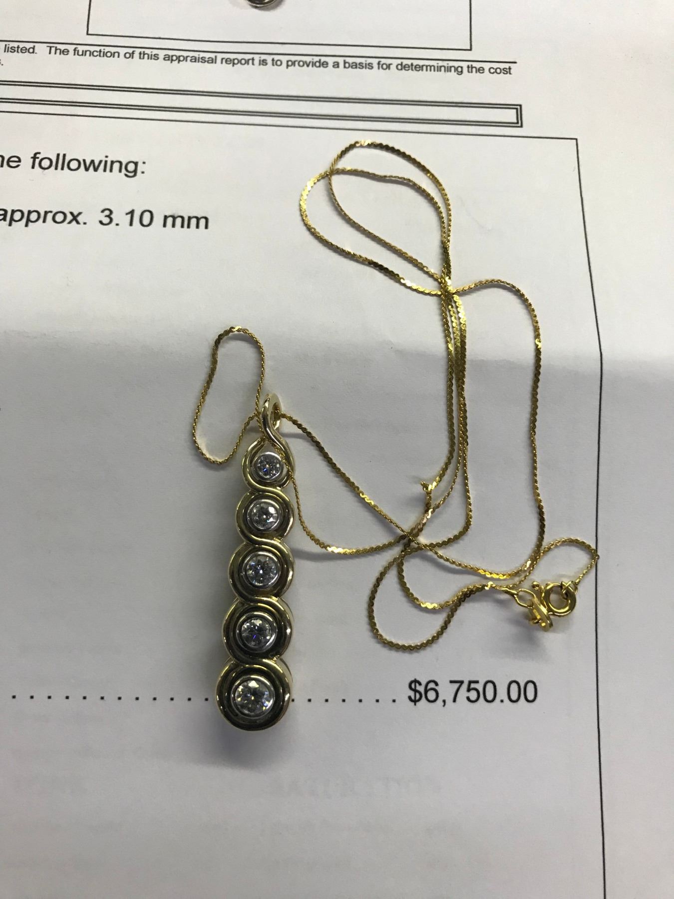 14K YG Diamond Pendant - 5 Round Diamonds 12.6g (Retail Value $6750.00)