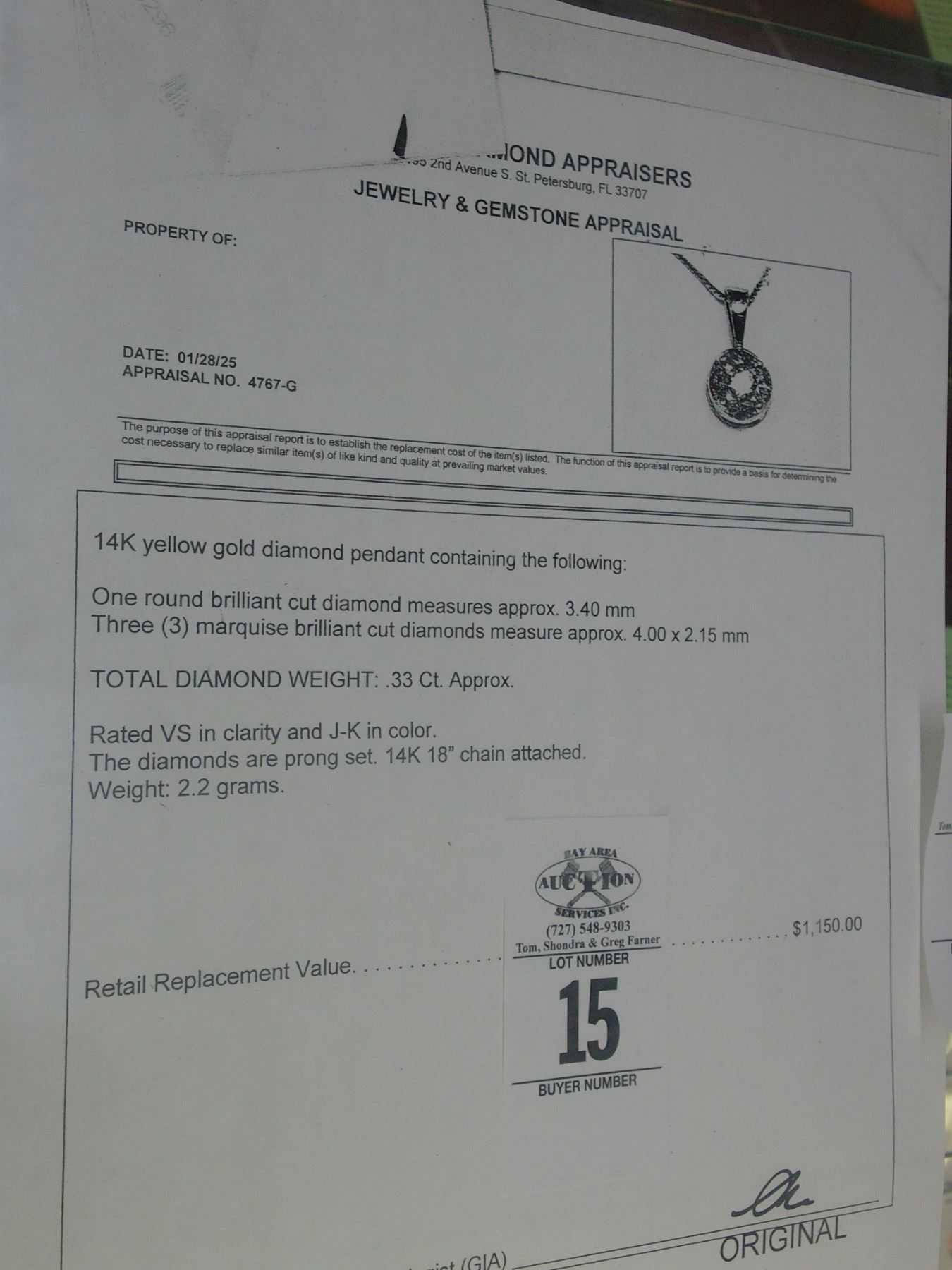 Diamonds w/14K 18" Chain 2.2g - Replacement Value - $1,150.00