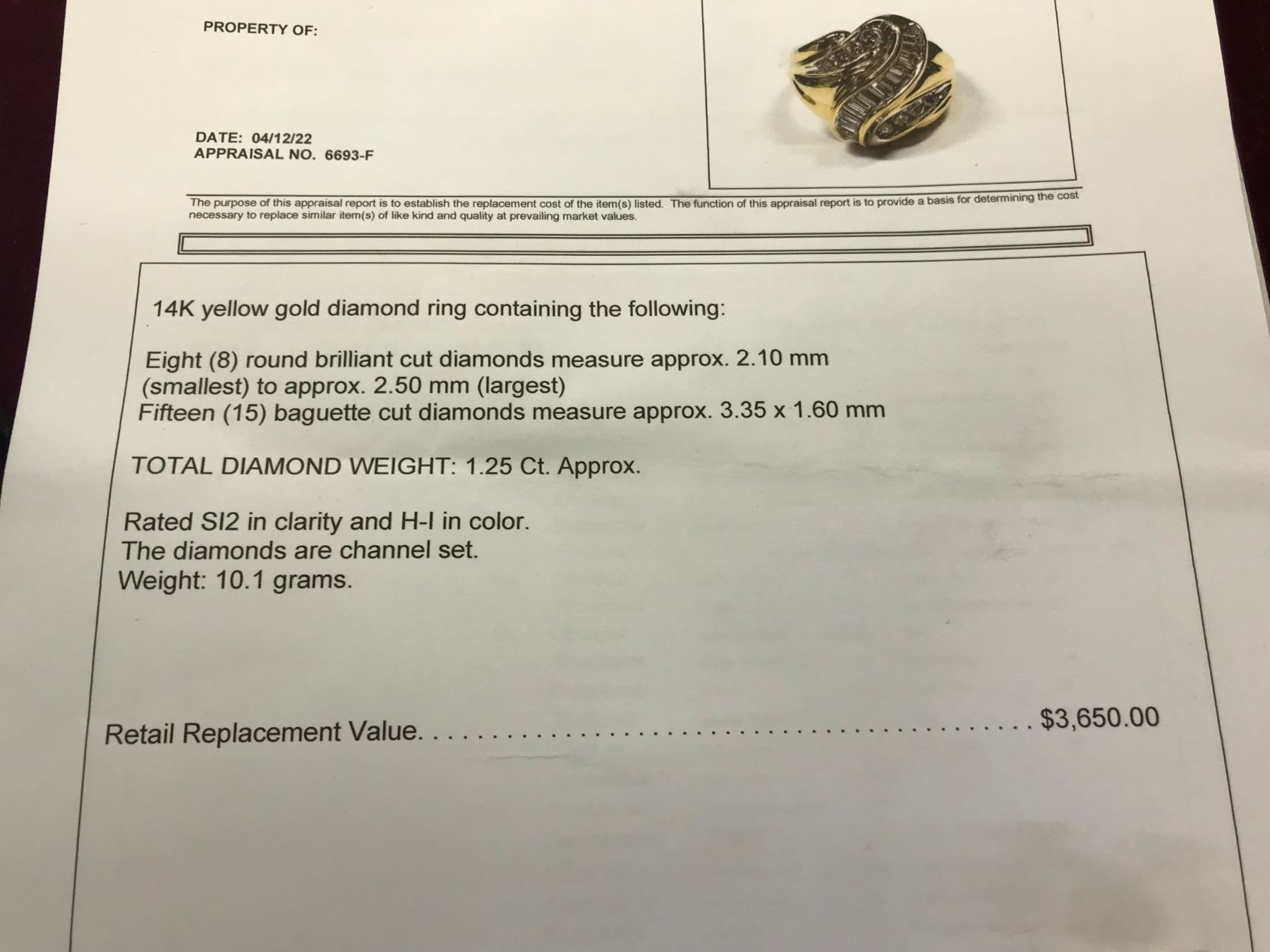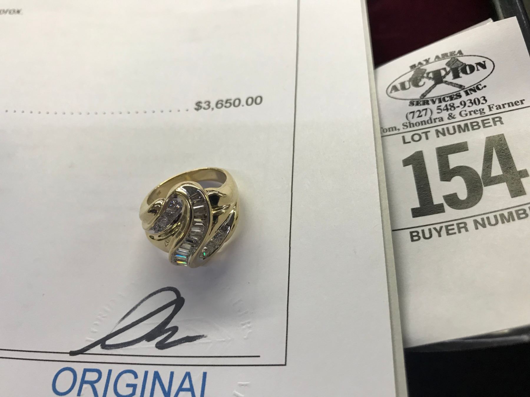14K YG Diamond Ring - 8 Round Diamonds 15 Baguette Diamonds 10.1g (Retail Value $3,650.00)