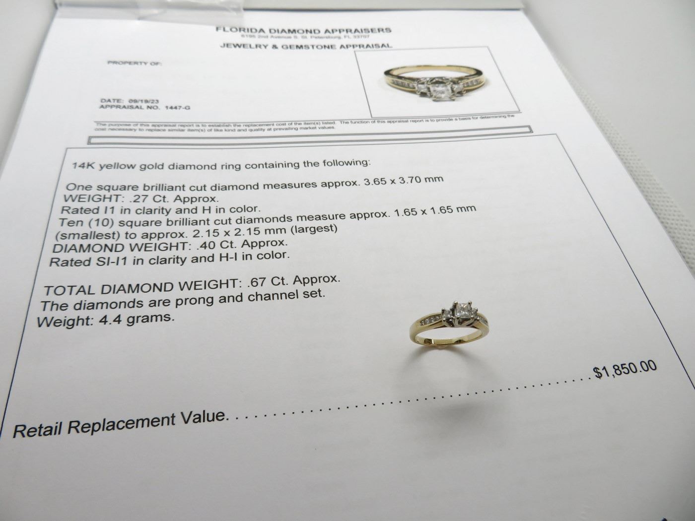 4.4g - Diamonds Are Prong/Channel Set - Replacement Value - $1,850.00