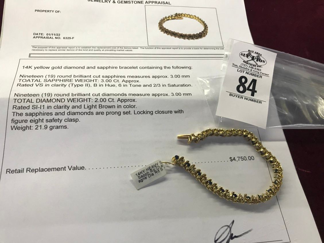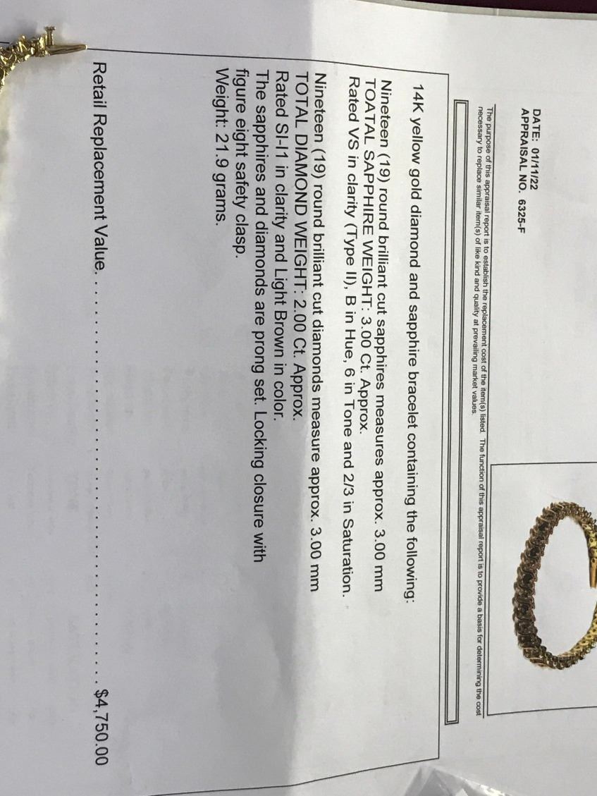 14K YG Diamond & Sapphire Bracelet - 19 Round Sapphires/Diamonds 21.9g (Retail Value $4,750.00)