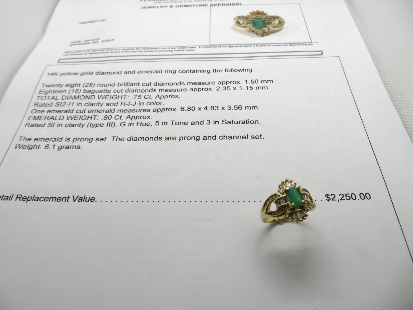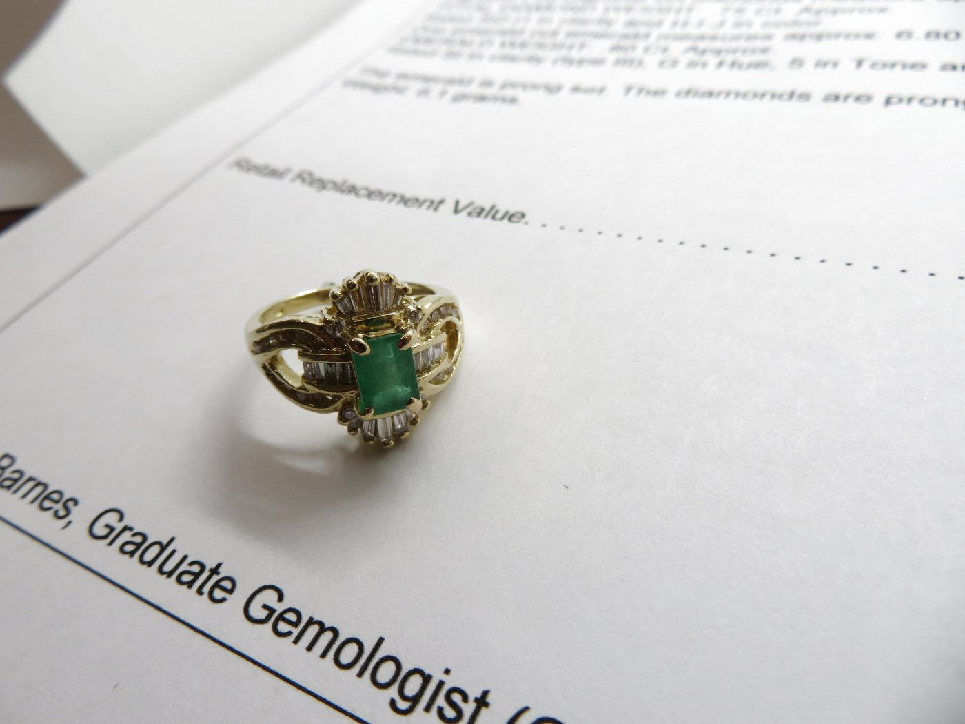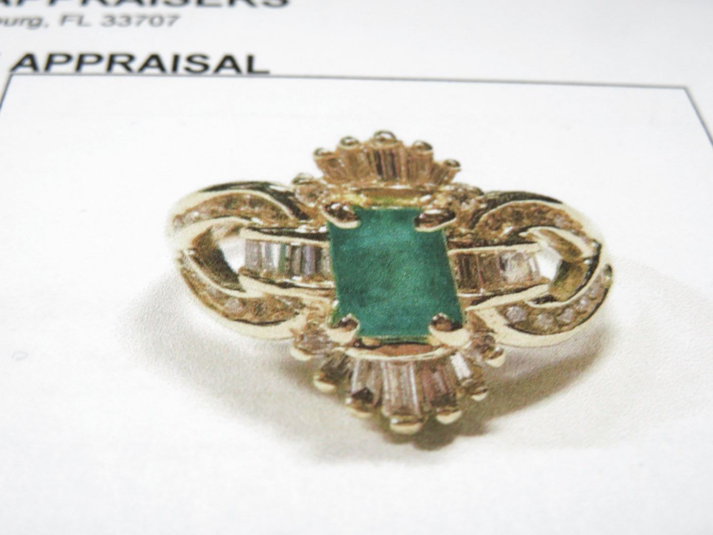 Baguette Diamonds. Emerald Is Prong Set 6.1g - Replacement Value - $2,250.00