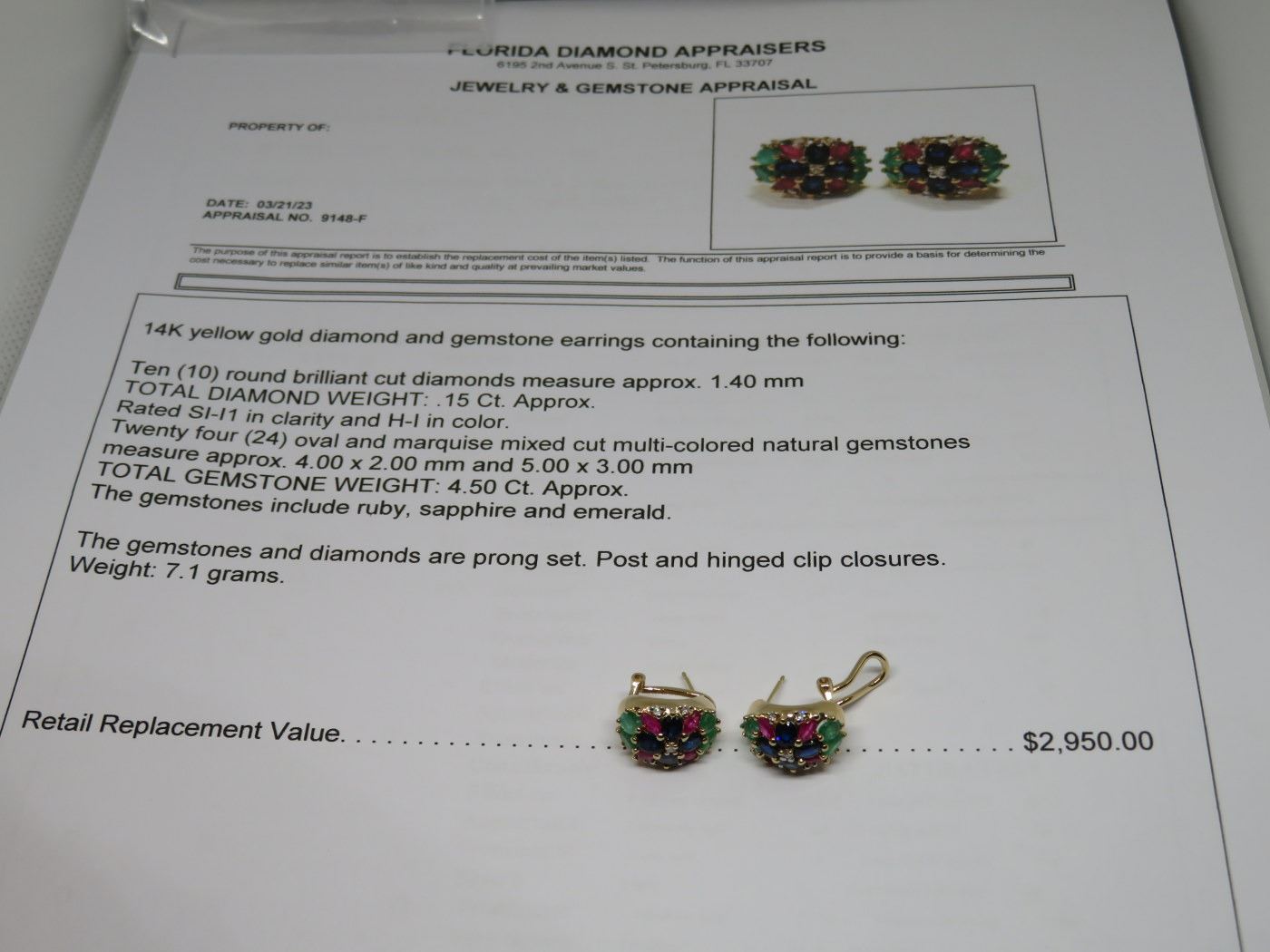 Oval/Marquise Mixed Cut Multi Colored Natural Gemstones 7.1g - Replacement Value $2,950.00