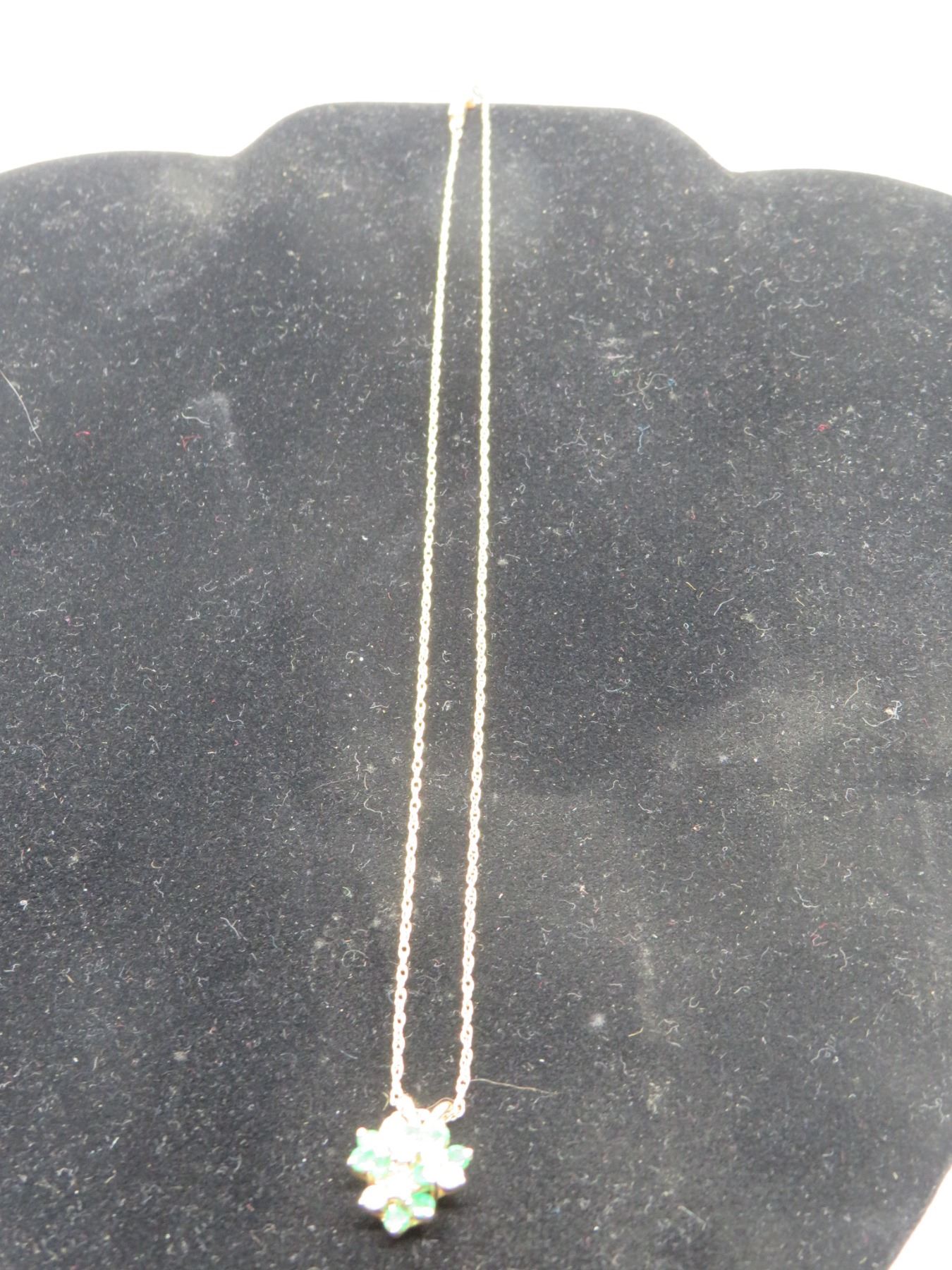 14K YG Emerald/Diamond Pendant w/Chain 9 Round Mixed Emeralds and 7 Round Cut Diamonds 3.5g