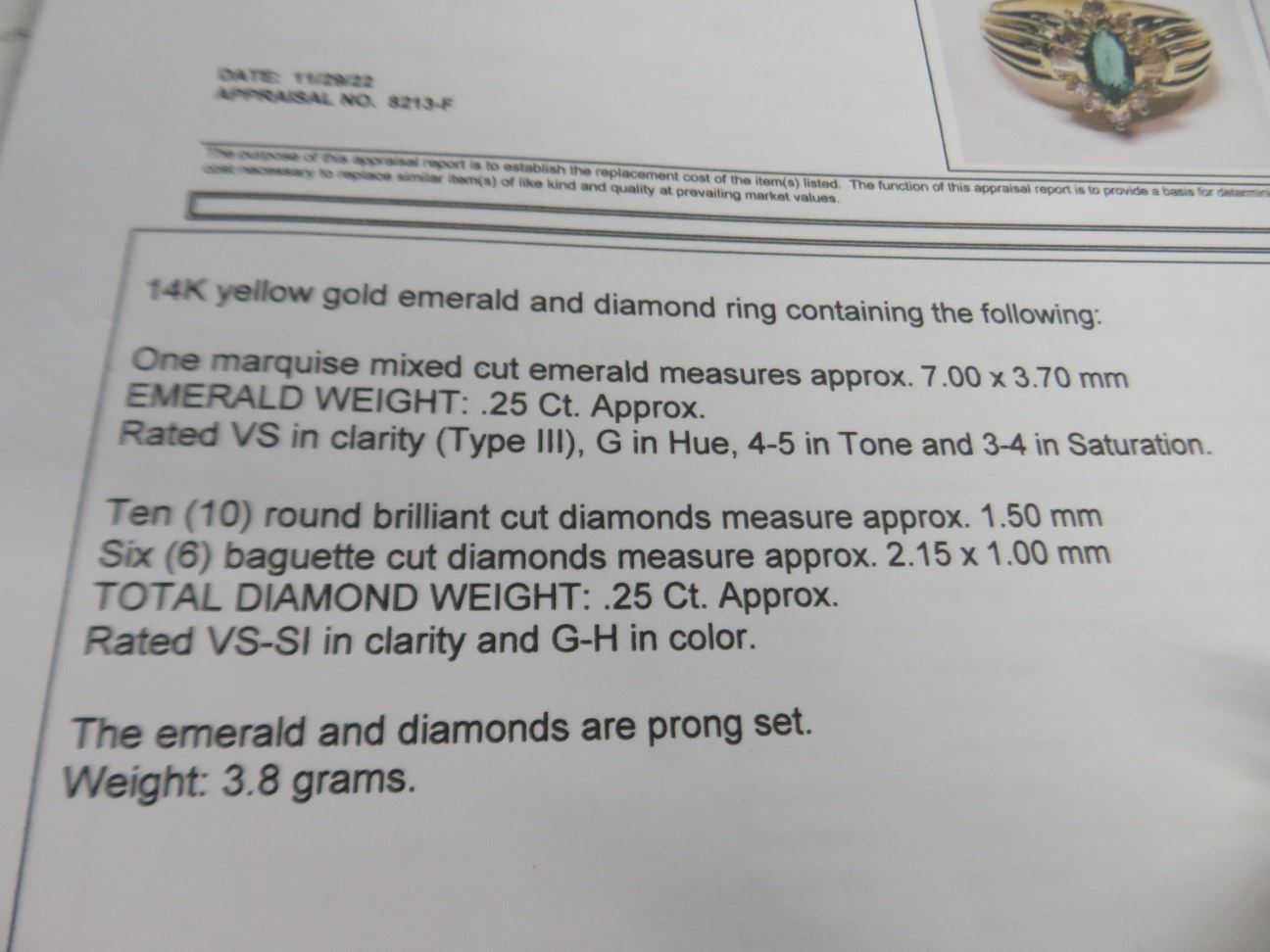 3.8g - Replacement Value $1,850.00