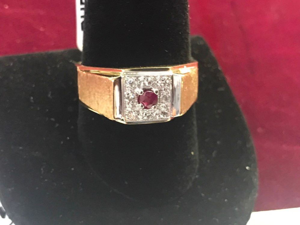 14K YG Gents Diamond Ring & Ruby Ring 5.8g