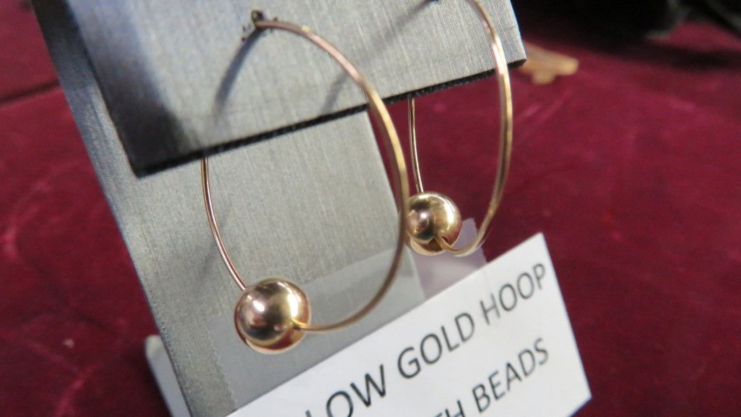 14K YG Hoop Earrings w/Beads