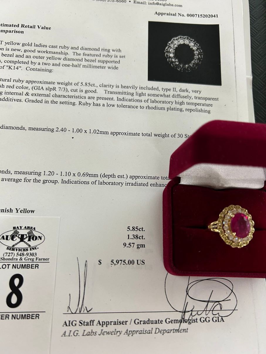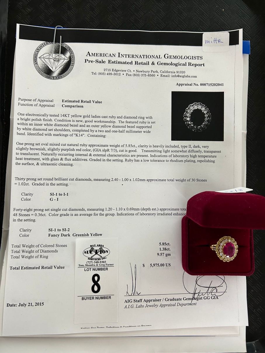 1.02CT - Total Weight 9.57G - Replacement Value - $5,975.00