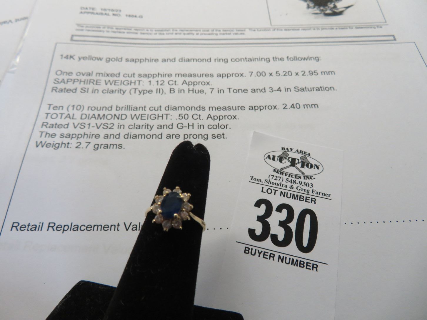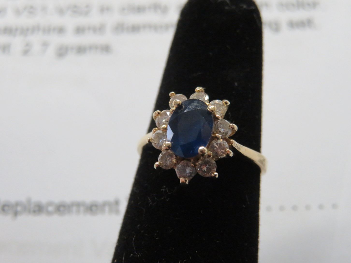 10 Round Cut Diamonds 2.7g. Sapphire & Diamond Are Both Prong Set. - Replacement Value - $2,050.00