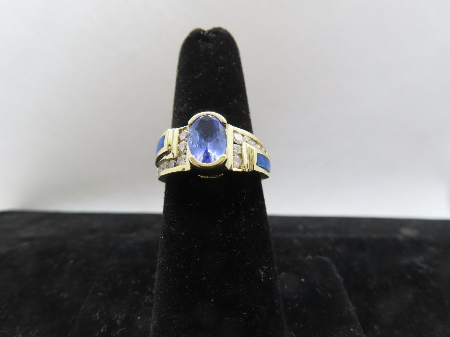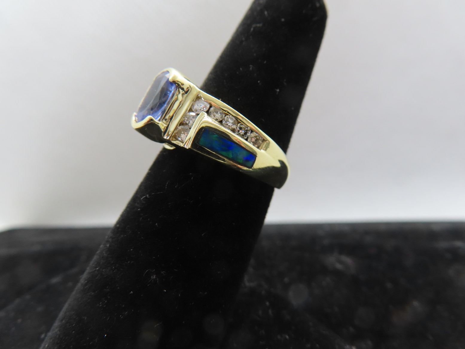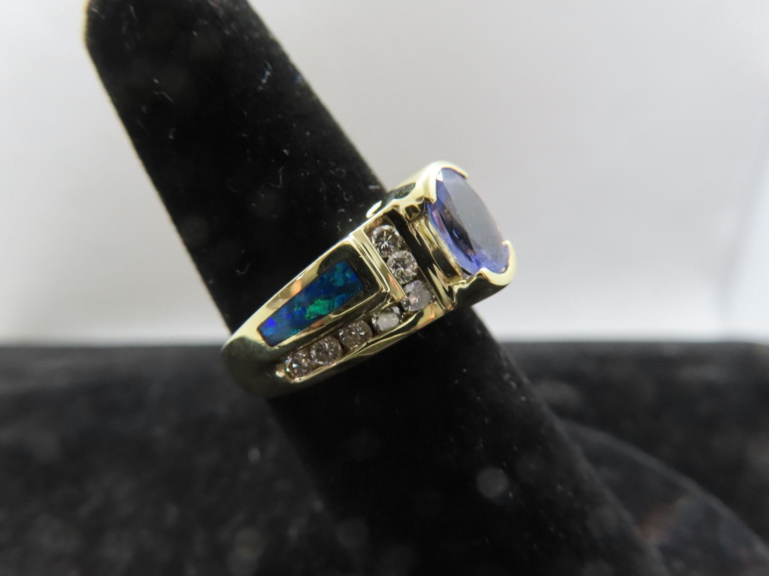 Round Cut Diamonds, Half Bezel Set -Channel Set Opal Blue/Green 7.0g - Replacement Value - $2,850.00