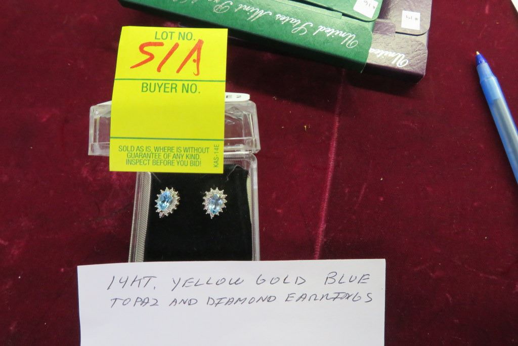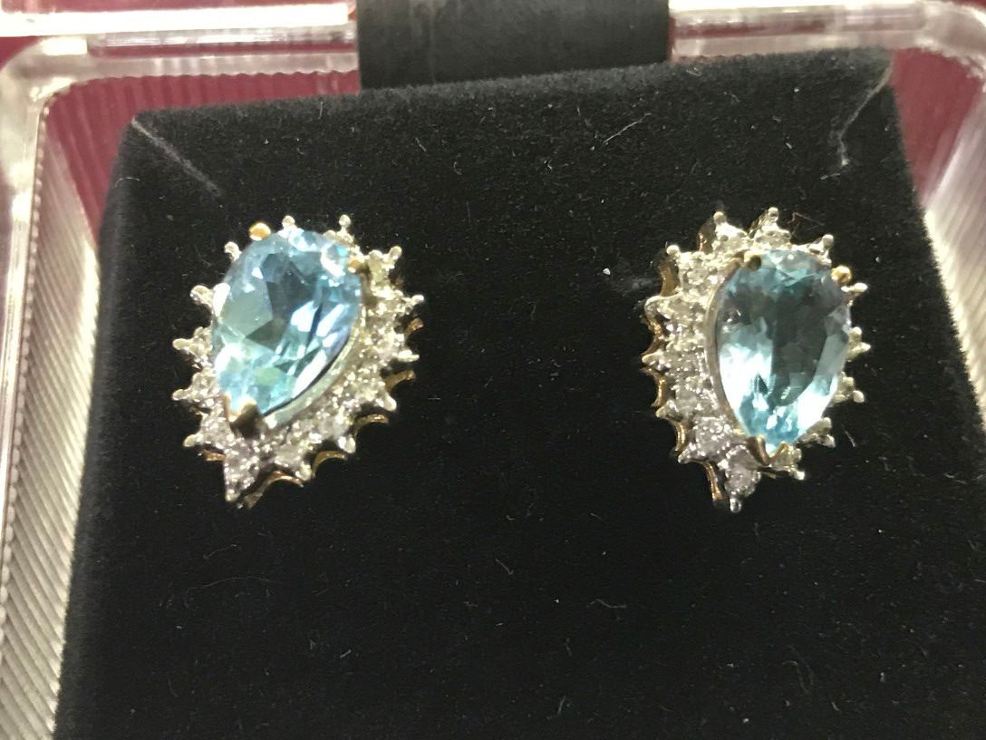 14K Yellow Gold Blue Topaz & Diamond Earrings