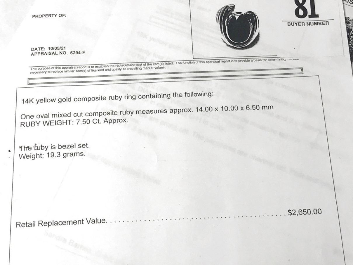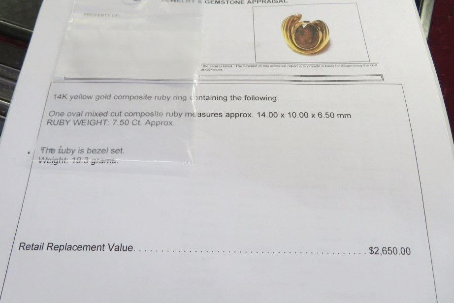 Ruby is Bezel Set 19.3g Appraised at $2650.00