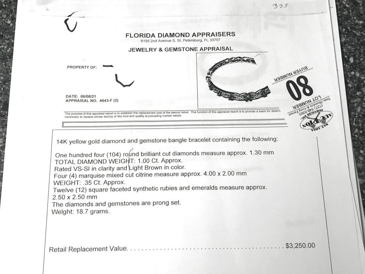 14K Yellow Gold Diamond & Gemstone Bangle Bracelet 104