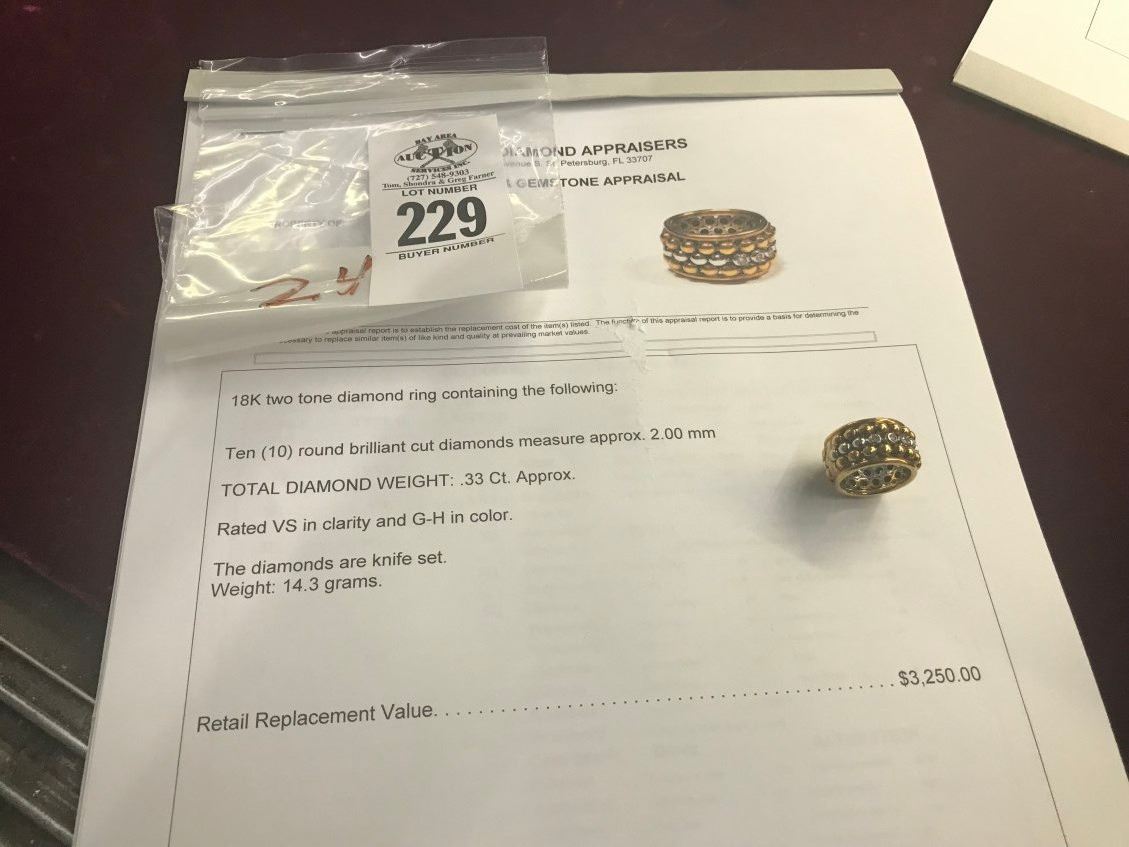 18 K Two Tone Diamond Ring, Ten Round Brilliant Cut Diamonds .33 CT, 14.3 G, Retail Value $3,250.00