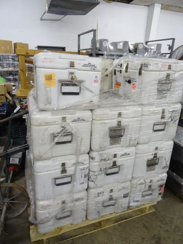 If you are having a freight company pickup at the auction warehouse and the item needs to be palletized, strapped and wrapped there is a Minimum $55 charge per normal size 4x4 pallet.