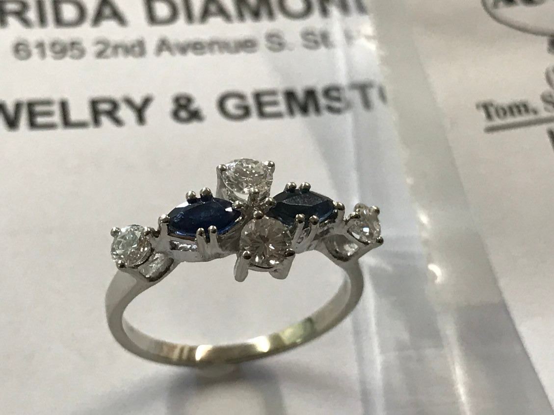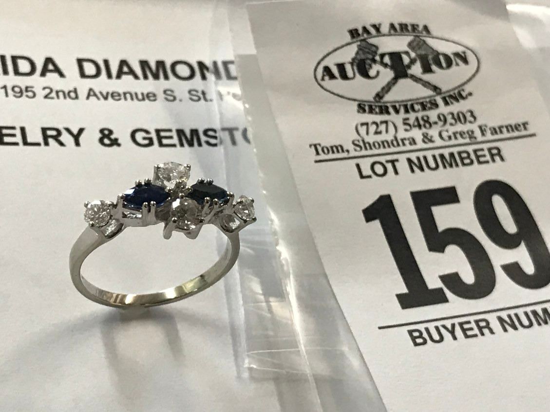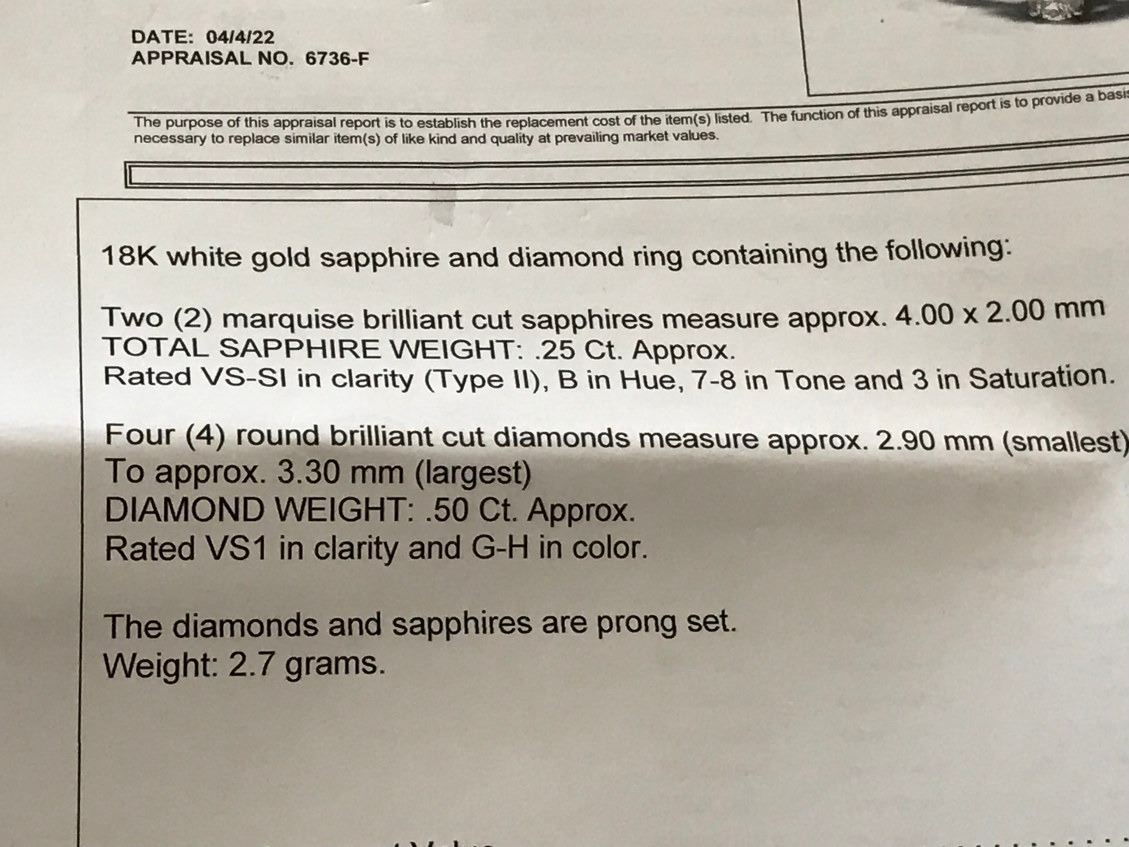 18K WG Sapphire & Diamond Ring - 2 Marquise Sapphire 4 Diamonds 2.7g (Retail Value $1,850.00)