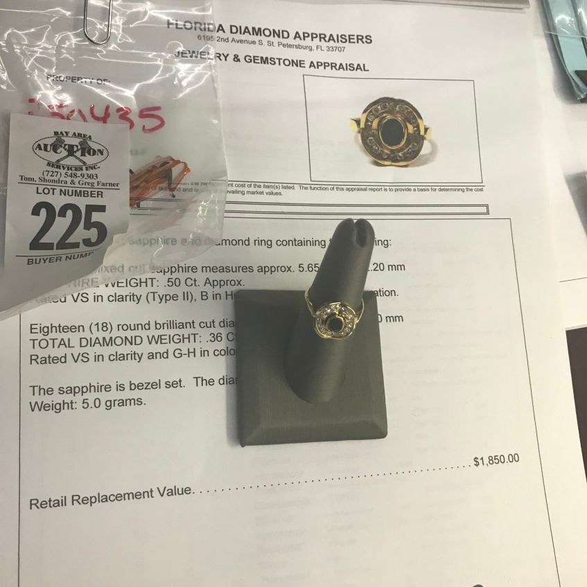 18K YG Bezel Sapphire & Diamond Ring, Sapphire Weight .50 CT Diamond Weight .36 CT, 5G, - $1,850.00