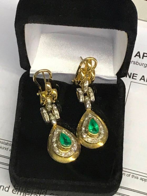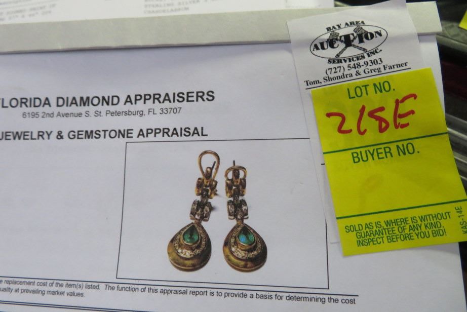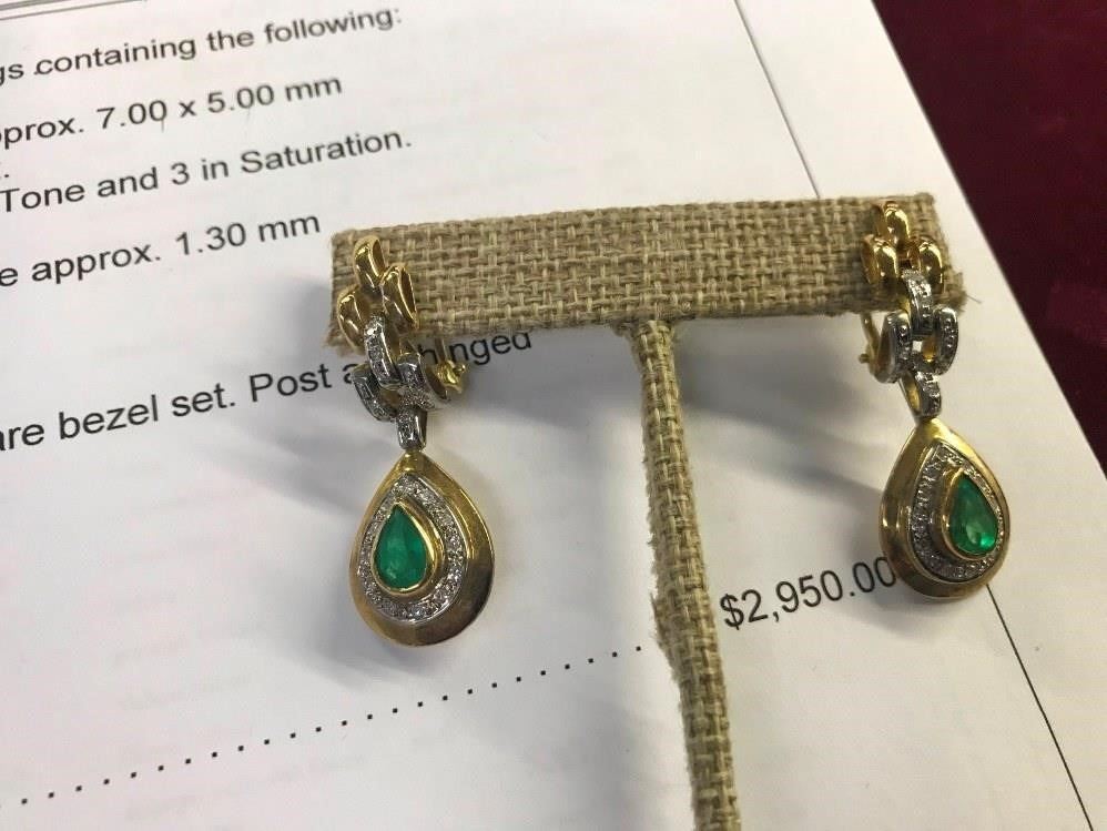 18K YG Diamond & Emerald Earrings 13.7g - Appraised at $2950.00