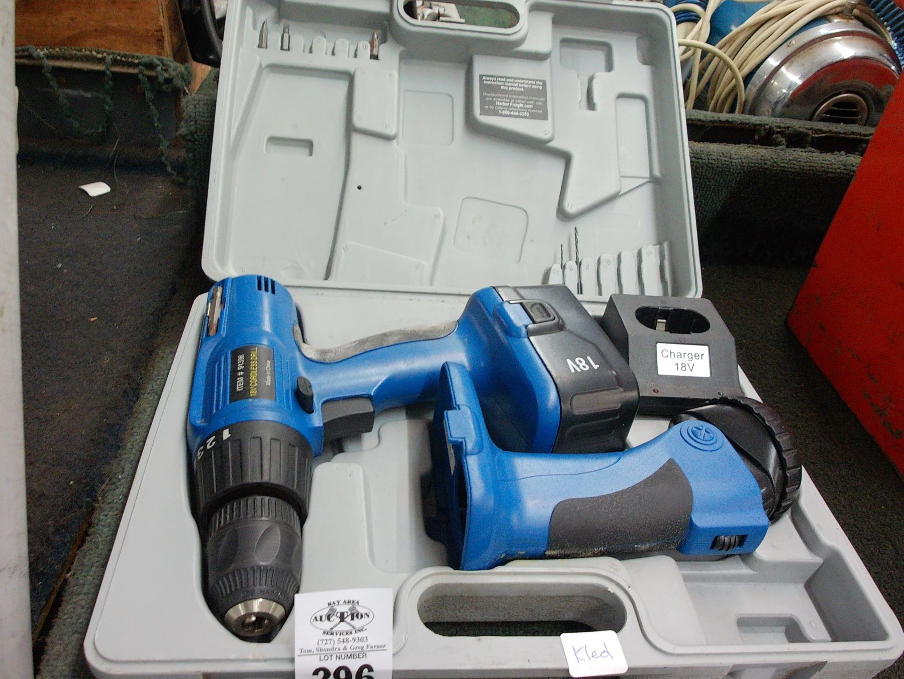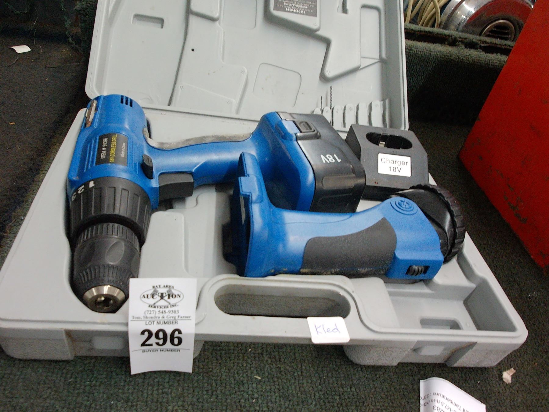 18V Cordless Drill w/Flashlight, Batteries/Charger, Case