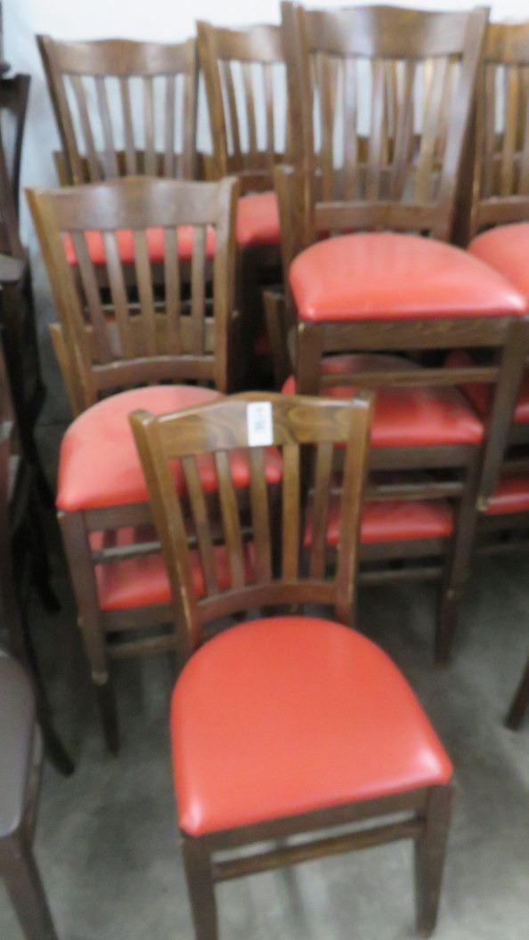 19-Wood Red Padded Slatback Chairs - 19 X $