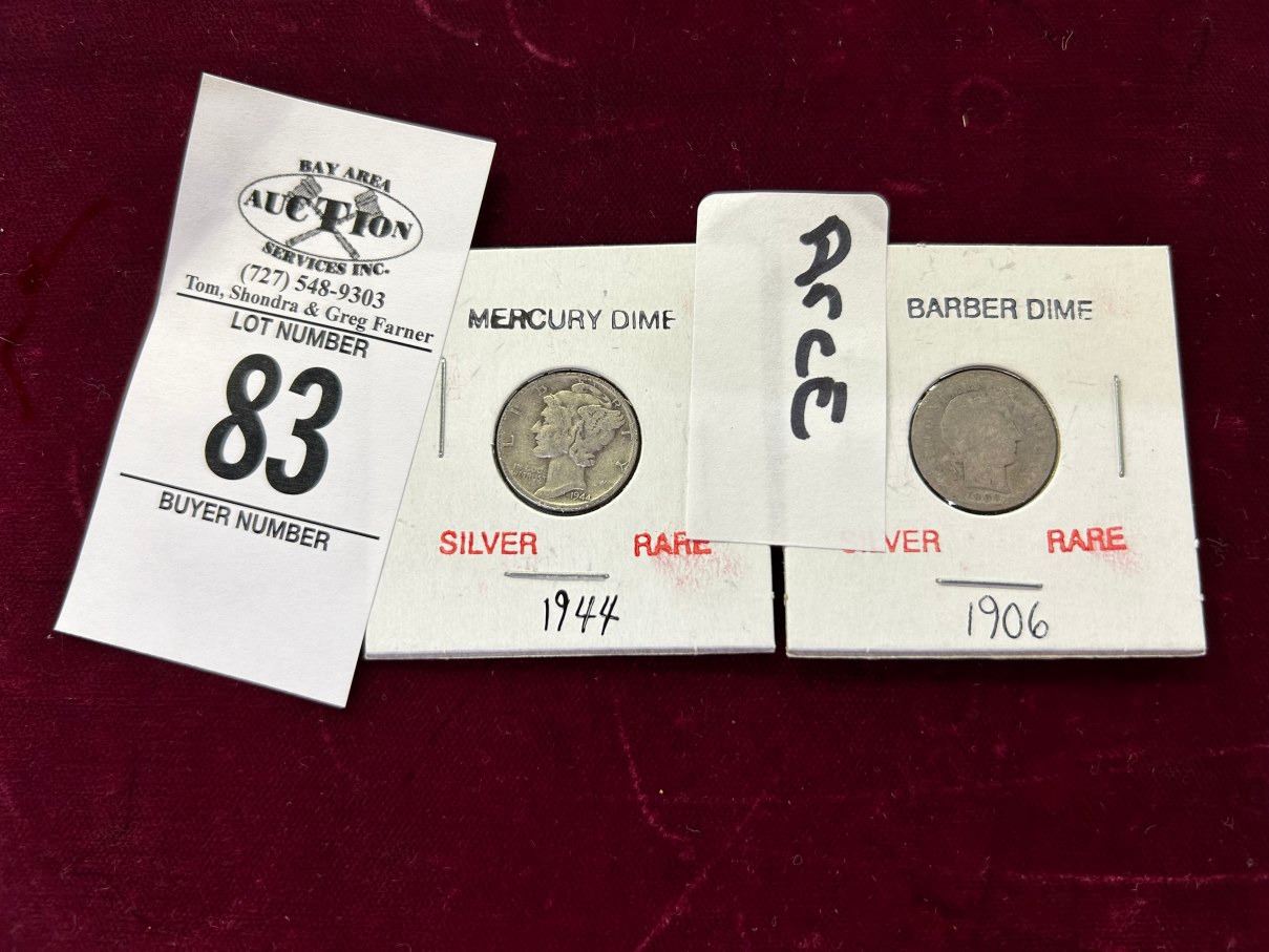 1906 Barber Dime, 1944 Mercury Dime - Both Silver