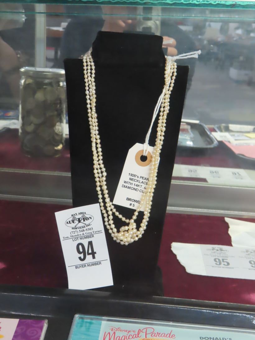 1920's Pearl Necklace w/14K/Daimond Clasp