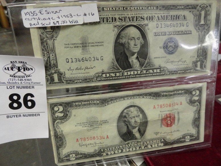1935-E Silver Certificate & 1953-C Red Seal $2.00 Bill