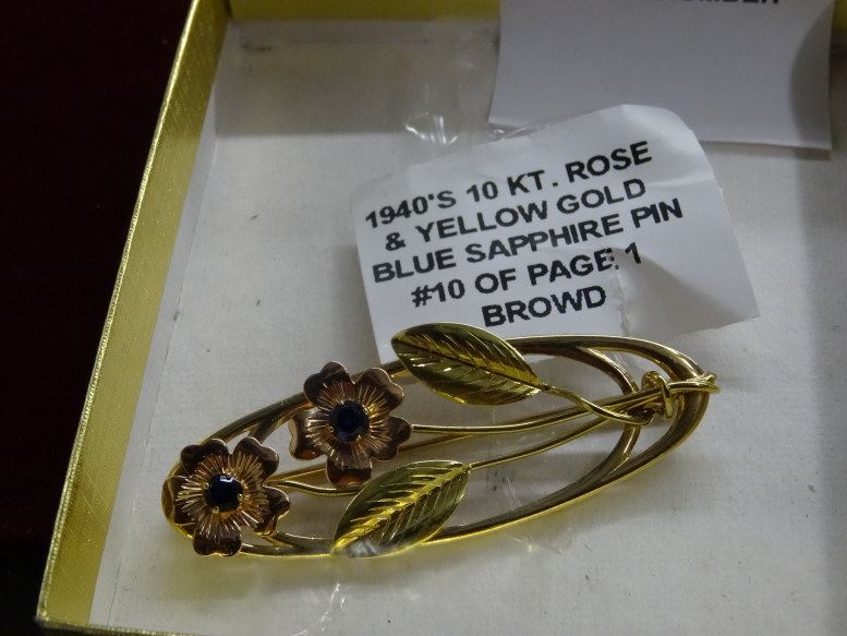 1940's 10 Kt. Rose & Yellow Gold Blue Sapphire Pin