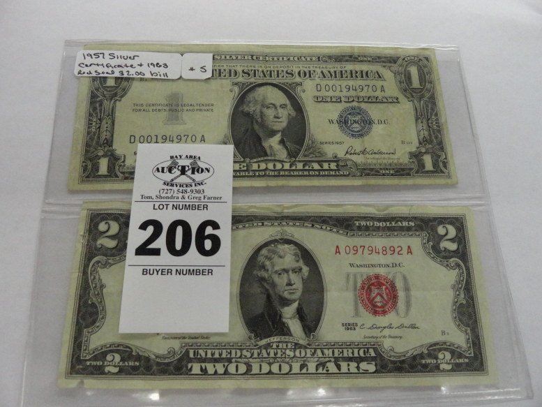 1957 Silver Cert. & 1963 Red Seal $2 Bill
