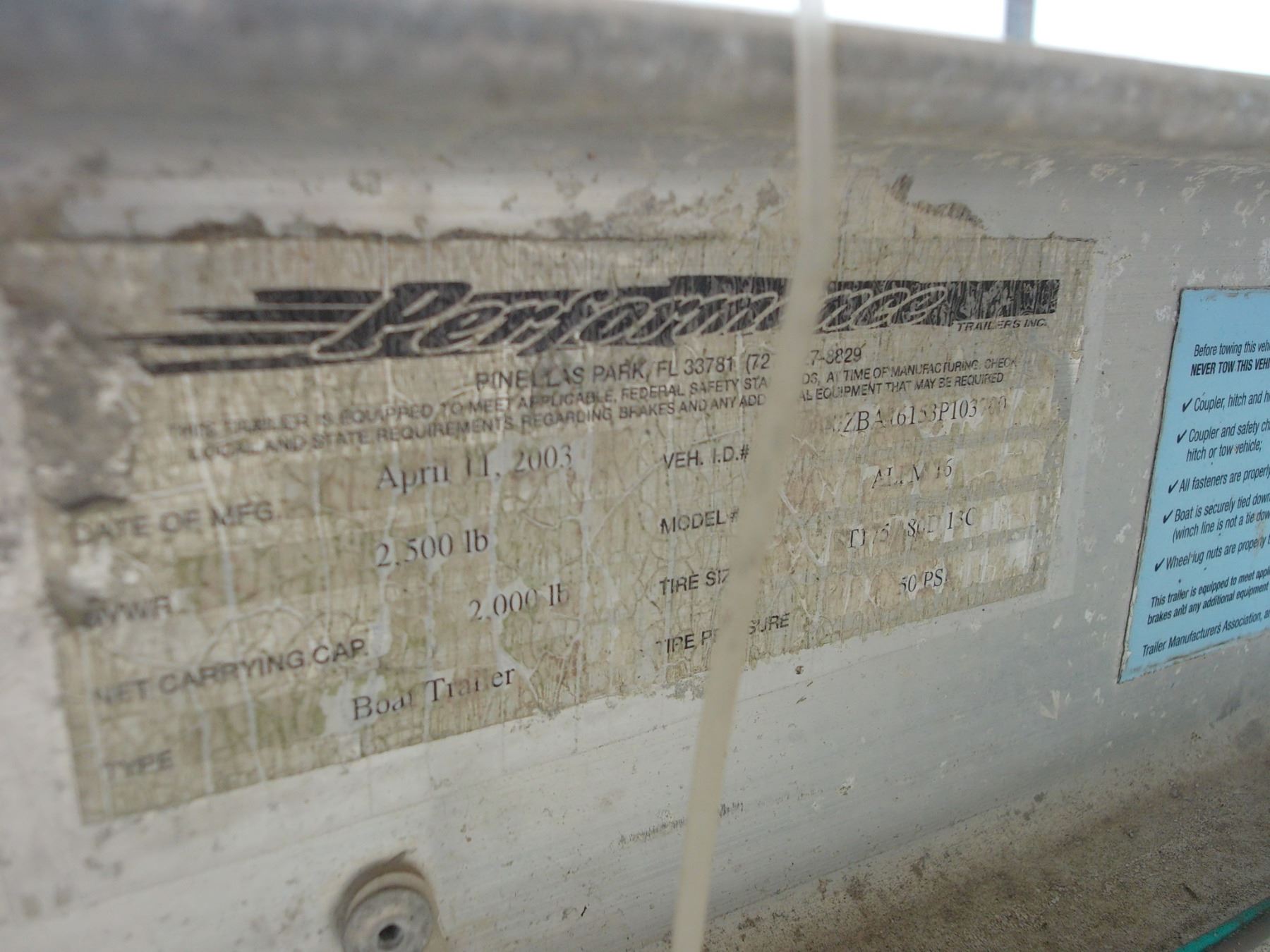 Power Jack Palt. Holding Platform, Cooler Seat, Bimini, Some Supplies, '01 Proformance S/A Alum. Trlr *Must Be Hommade No Reg.* - HULL # NLAS0038F595