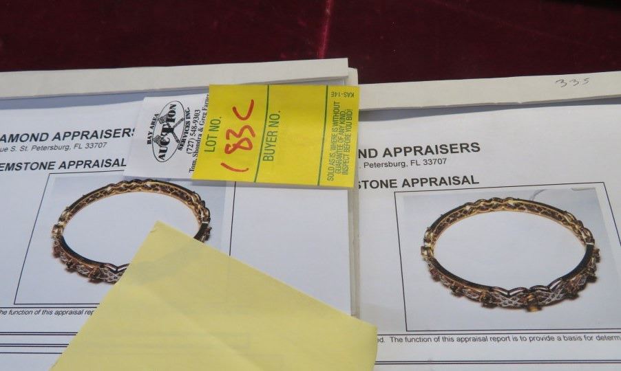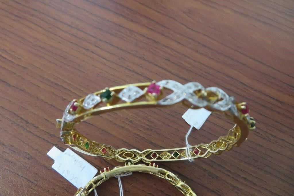 (2) 14K YG & Gemstone Bangle Bracelet w/104 Diamonds, 4