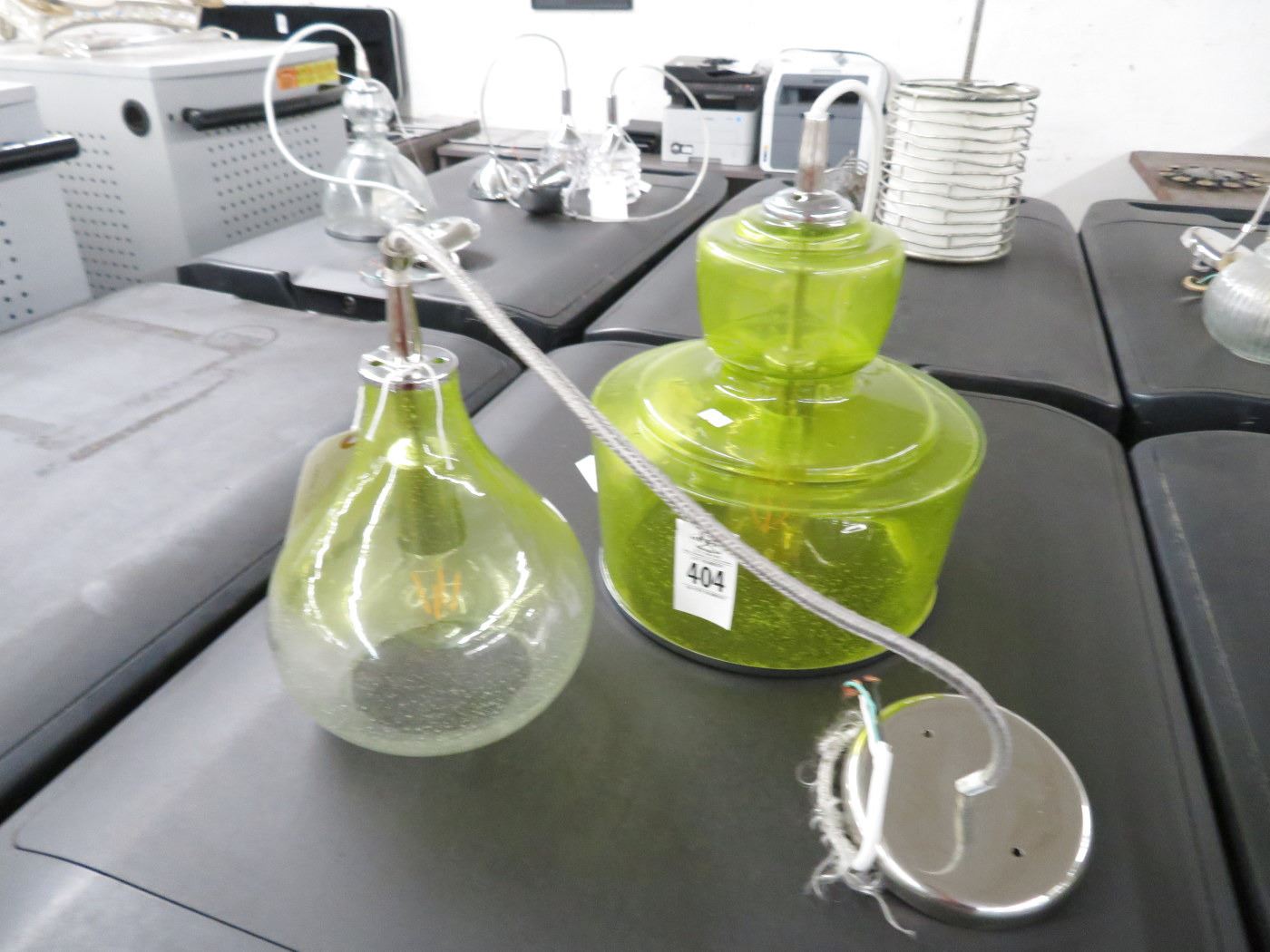 2-Art Glass Green Hanging Light Fixtures - 2 X $