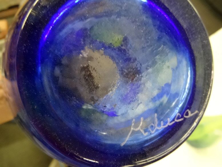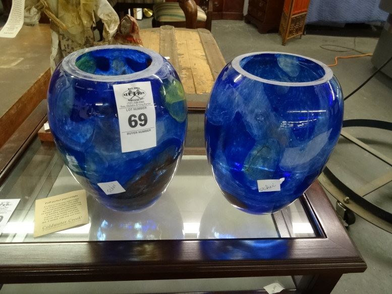 2 Artist Signed Art Glass Vases - Blue - 2 Times the Money