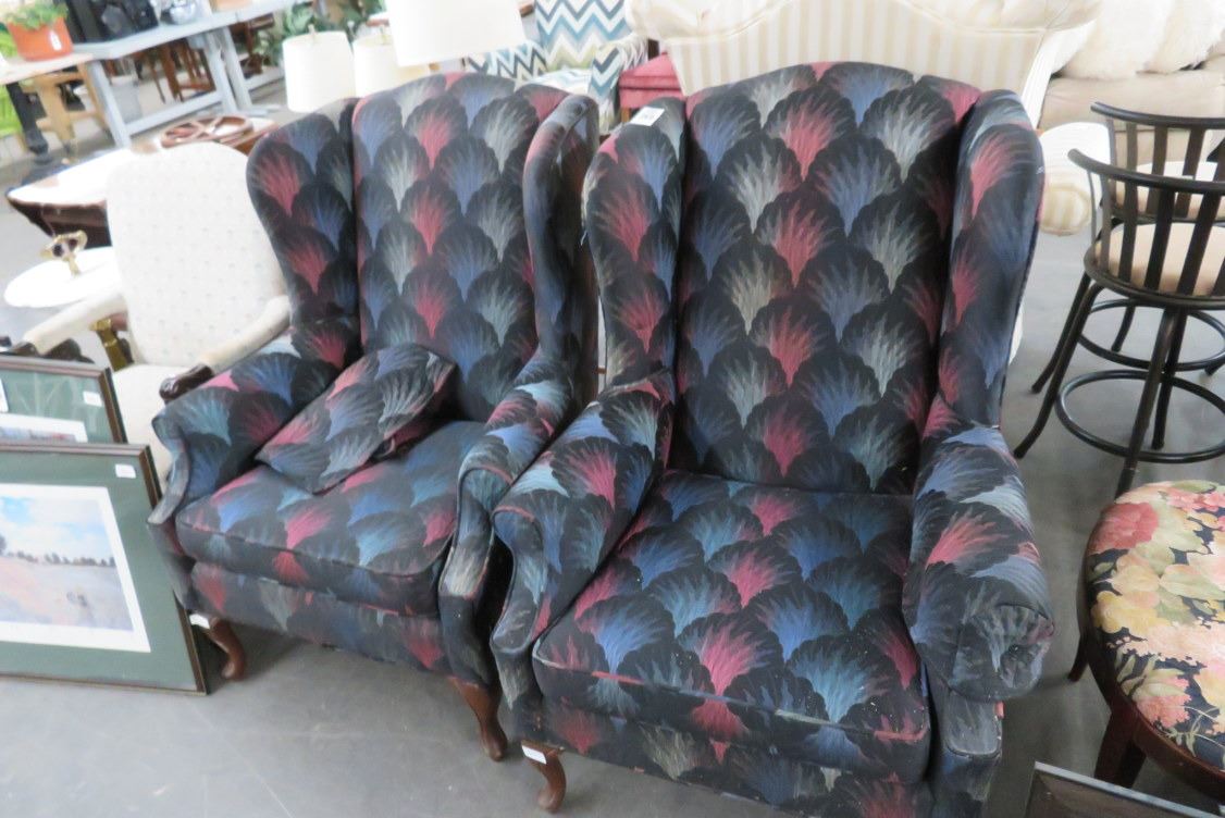 2-Blue Abstract Pattern Padded Armchairs - 2 X $