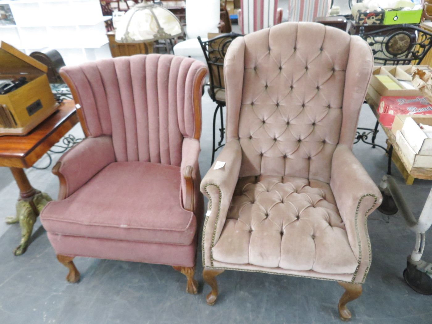 2-Brown Tufted Wingback Chair/Maroon Cloth Armchair - 2 X $