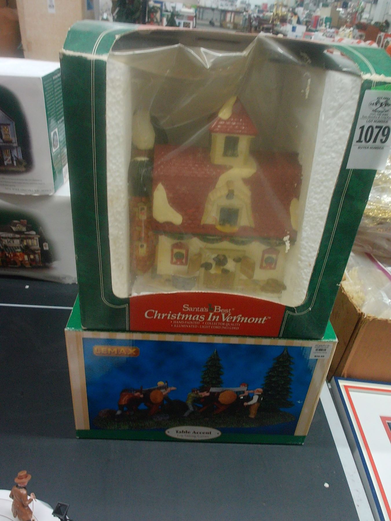 2-Christmas Vermont House, Log Cutter Table Accent - 2 X $