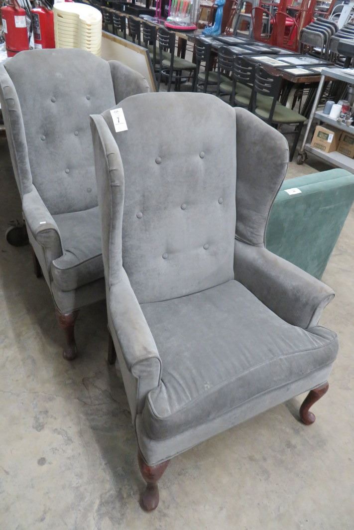 2-Grey Tufted Wingback Chairs - 2 X $