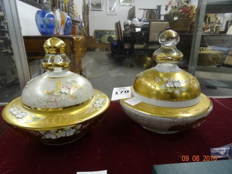 2 Hand Painted Lidded Bowls - 2 Times the Money