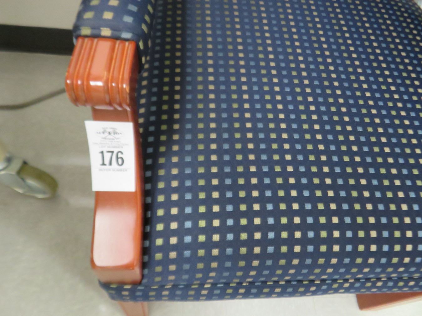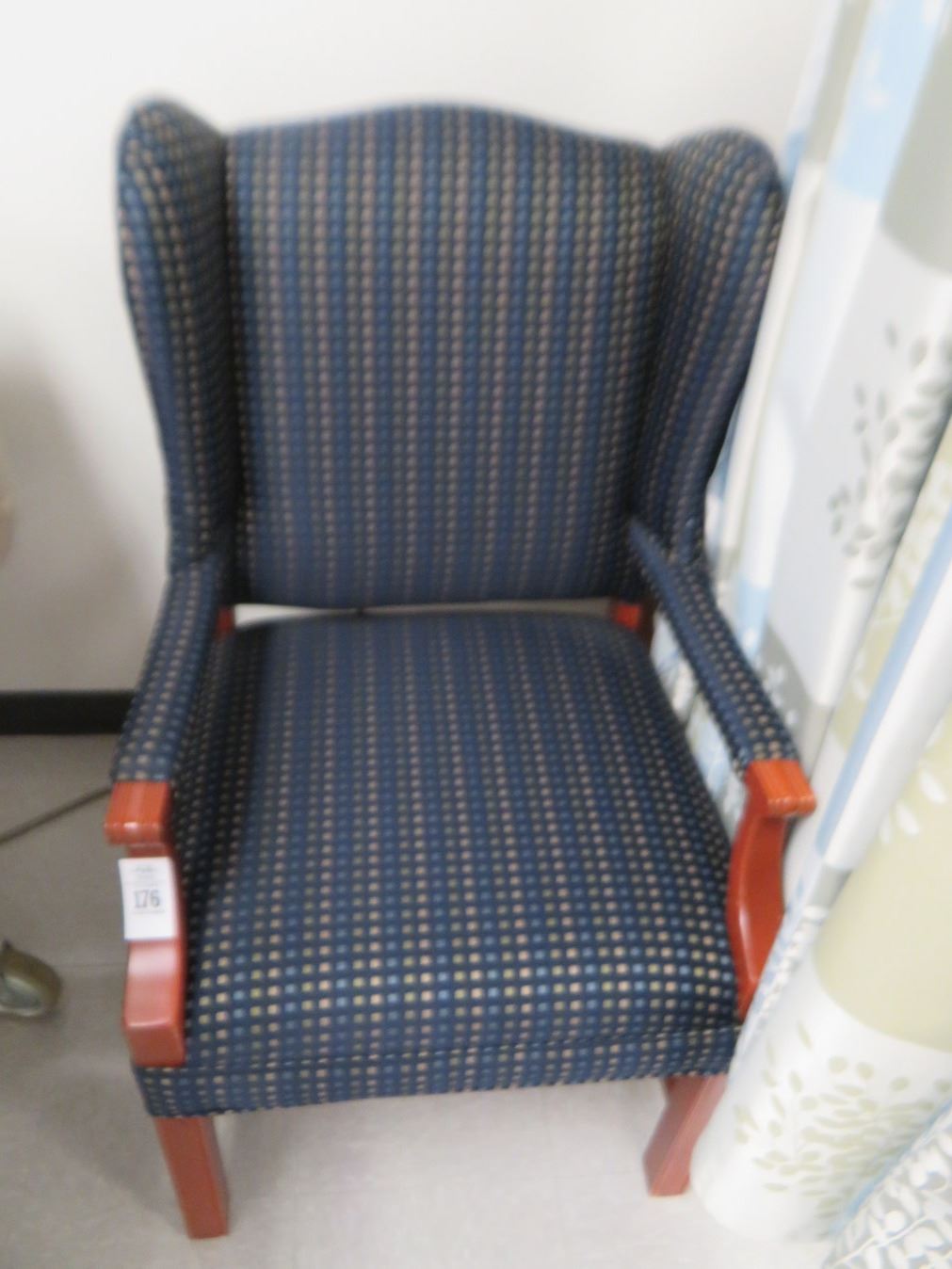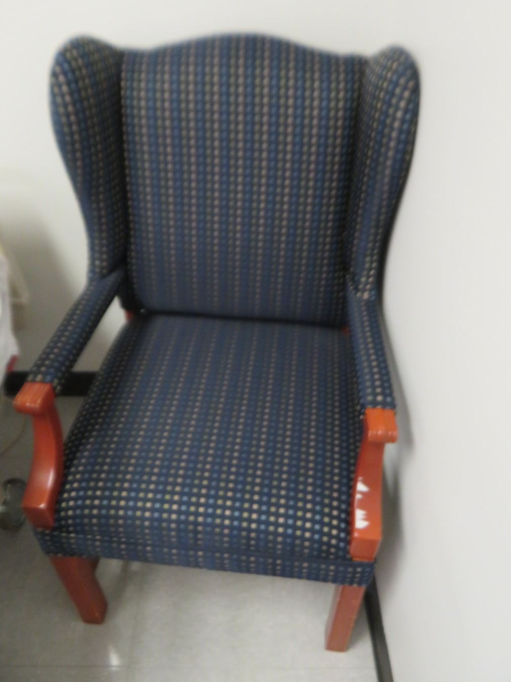 2-Mahogany Trim Blue Cushioned Wingback Chairs - 2 X $