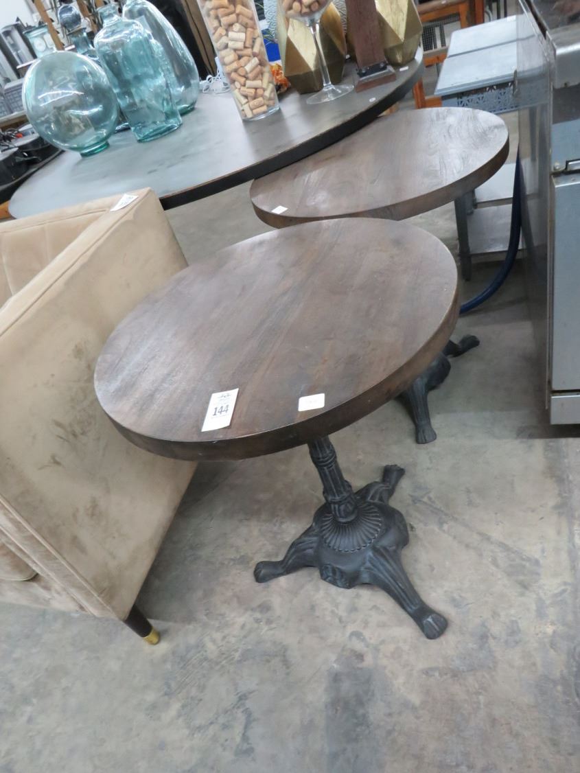 2-Oak Round Lounge Table w/Ornate Cast Base - 2 X $