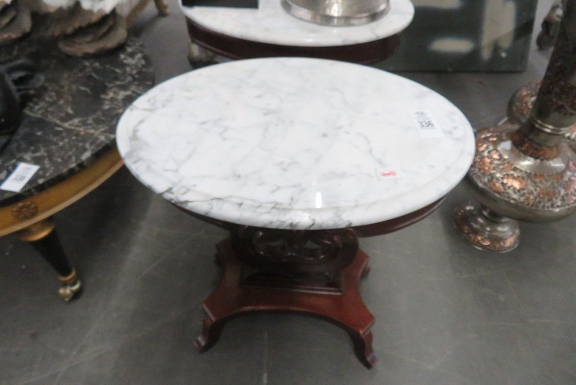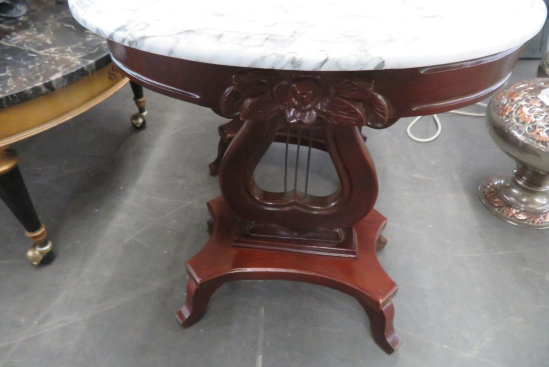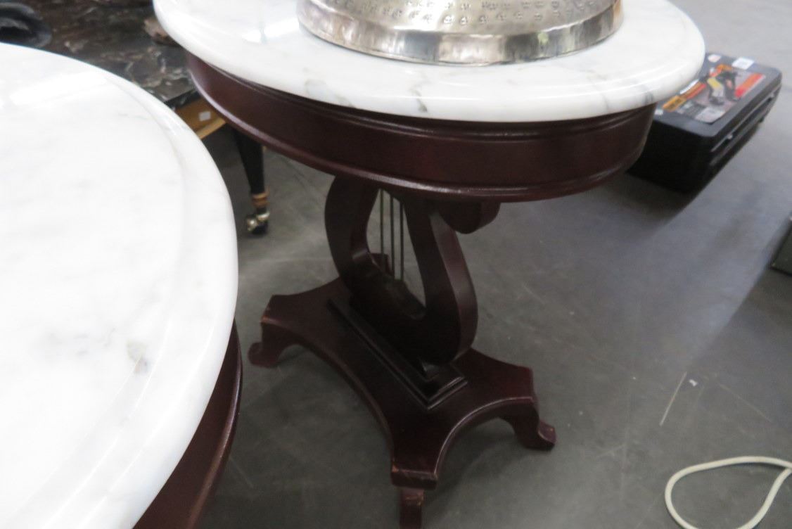 2-Oval Marbletop Mahogany Harp Base Side Tables - 2 X $
