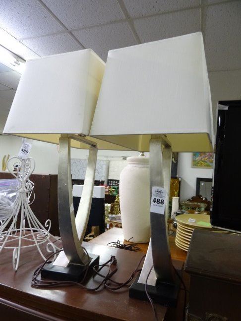 2 Silver Bent Column Table Lamps - 2 Times the Money