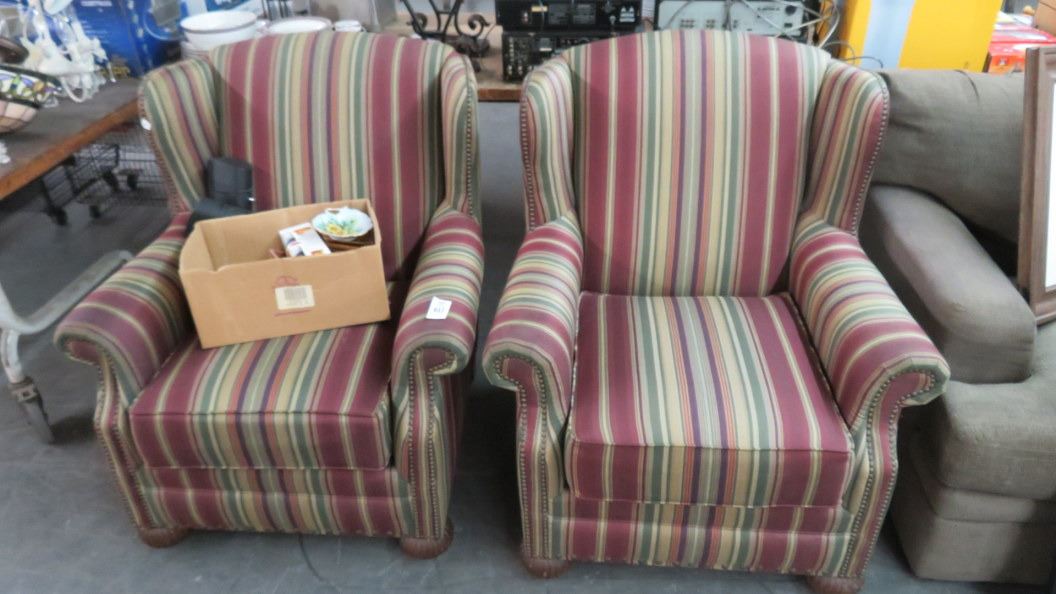 2-Striped Pattern Button Tufted Armchair - 2 X $